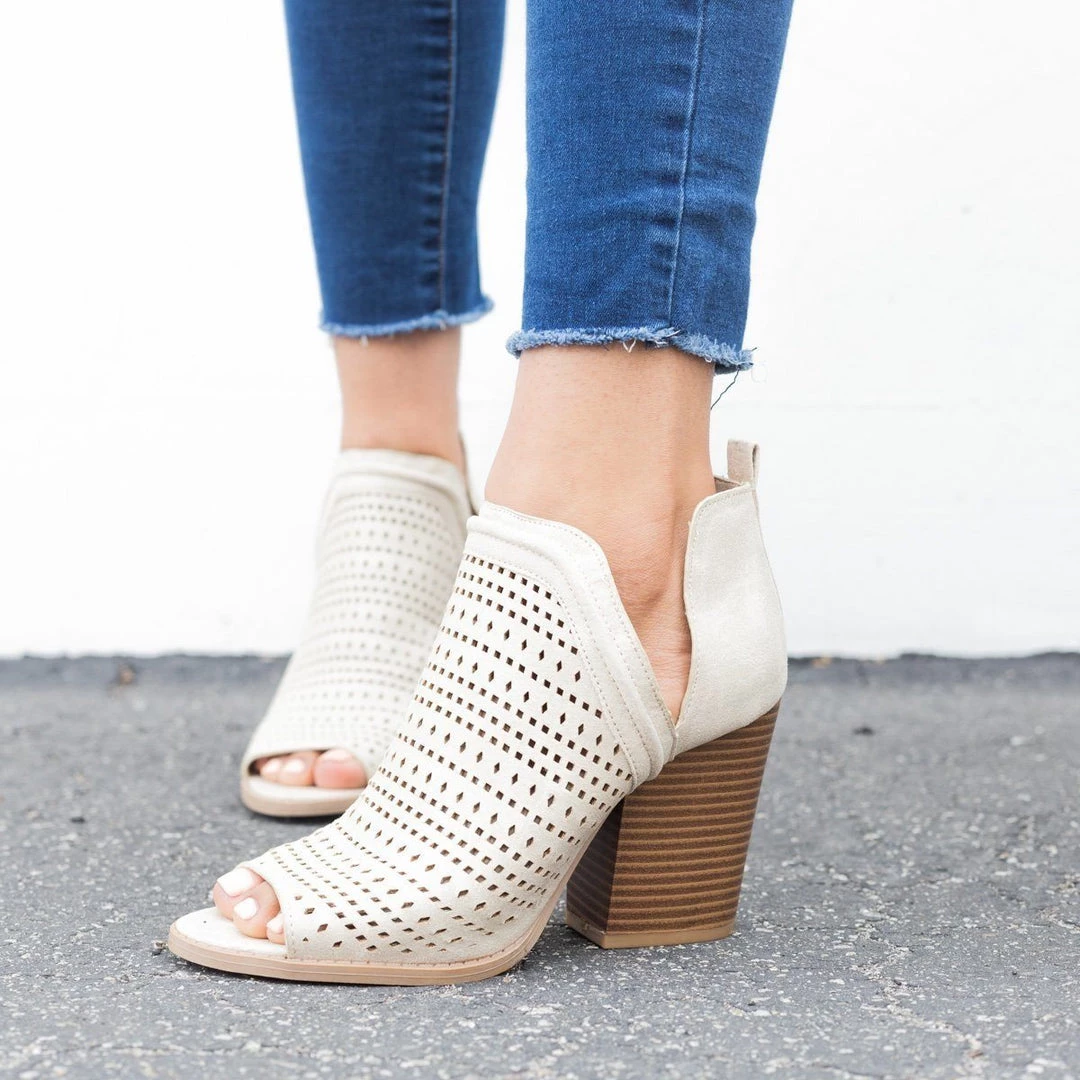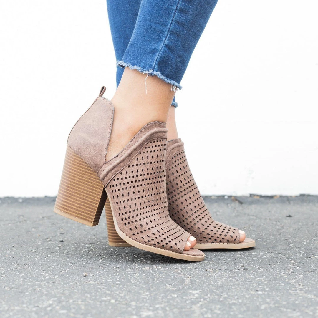 Your outfit for a day of shopping or a cute brunch would be best completed by these stylish perforated peep toe booties by Qupid Shoes Barnes-226!. Made with faux leather and featuring a stacked ~3.5” heel and cushioned insoles, these booties are the best addition to your wardrobe. Wear yours with a pair of frayed hem jeans and a cute tank for a day on the town! These have been running true to size.