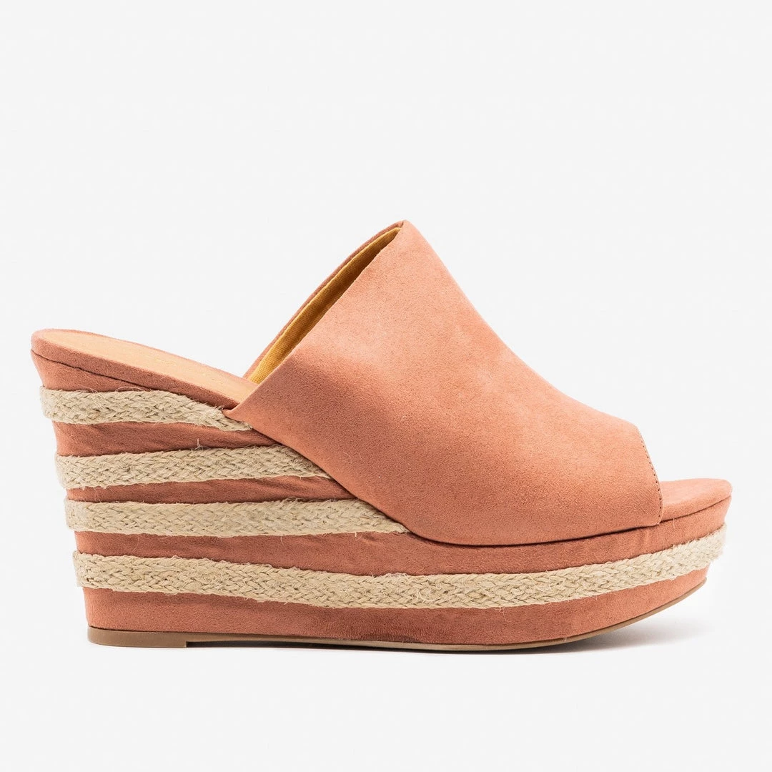 Kick up the dust in these super cute Qupid Shoes Ardor-159 wedges! Designed with soft faux suede, these beauties feature a 1″ platform that rises into an approx. 3.5″ wedge heel that’s accented with stripes of espadrille. The body is a simple open toe, slip on design in a pretty dusty pink that matches the stripes on the heel. Pair these wedges with wide leg flowy pants and a fitted crop top for a trendy spring look! Made with all man-made/vegan materials and runs true to size.