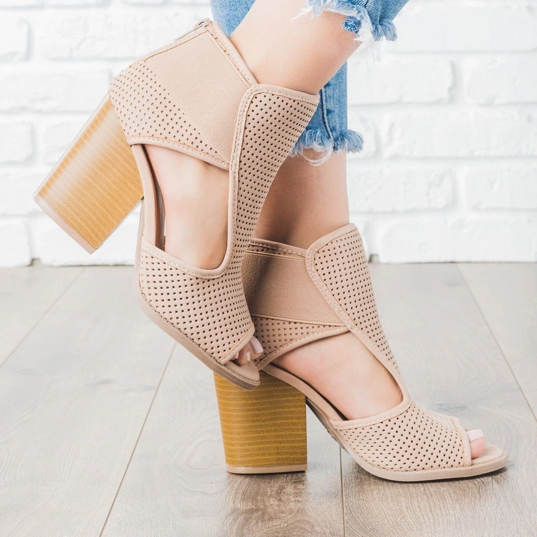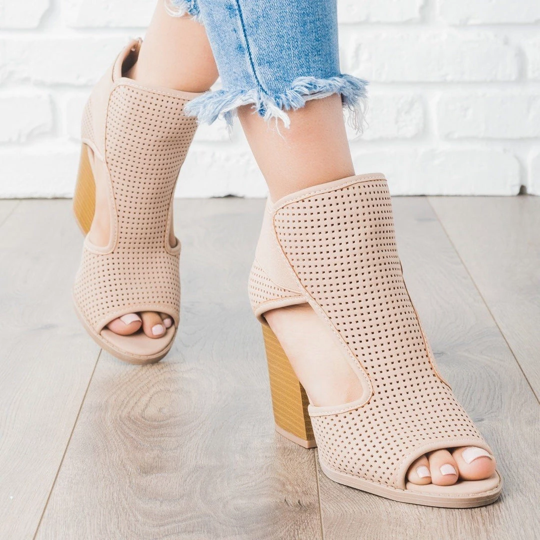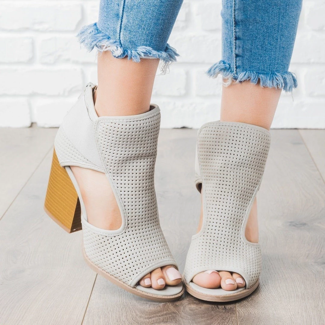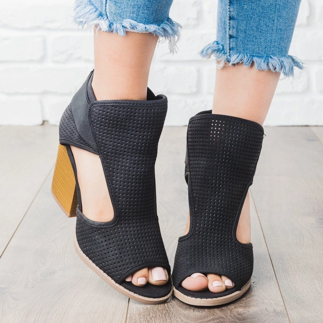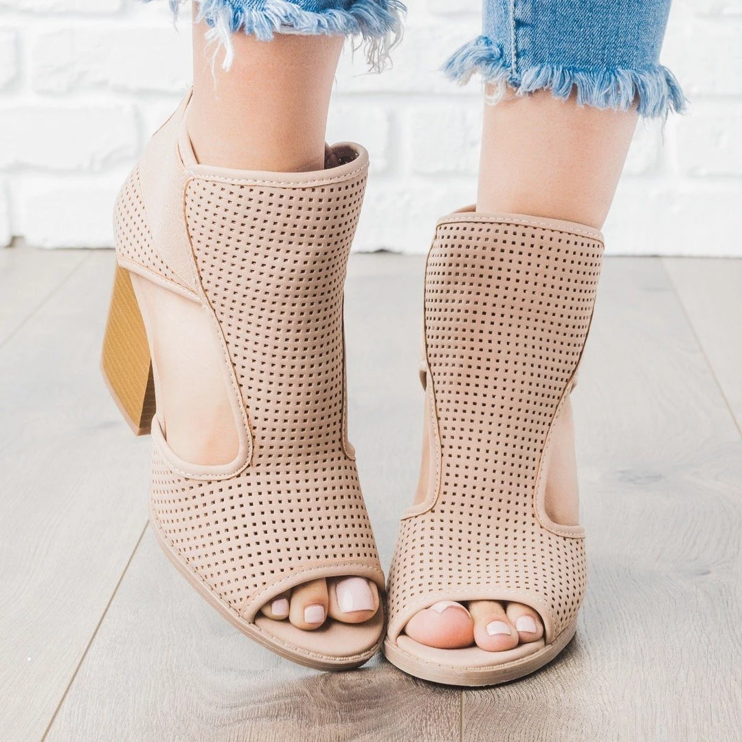 Qupid Shoes Perforated Cut Out Heel Booties Newest Arrivals