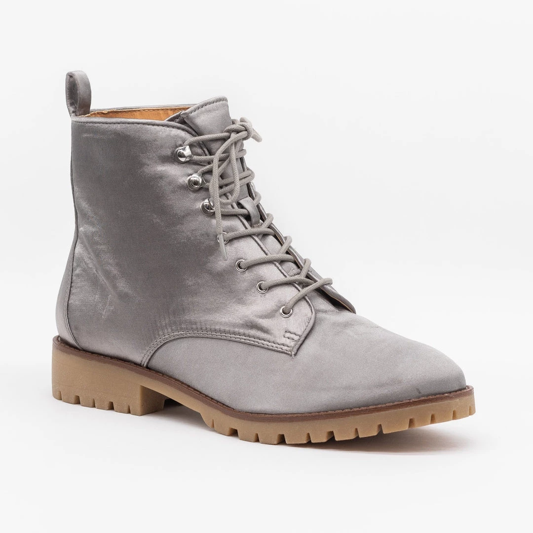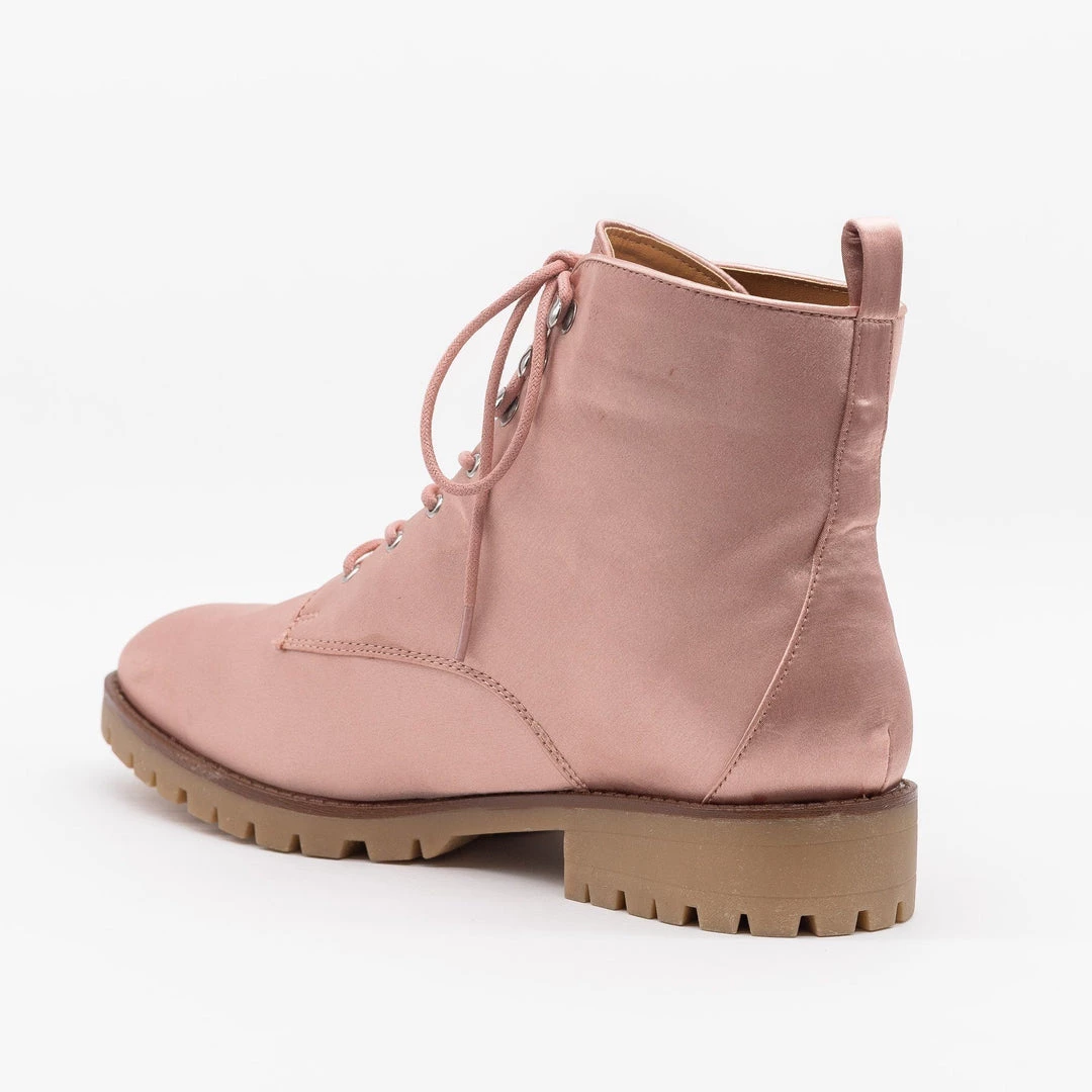 Season to season, these Qupid Shoes Severe-01 satin fashion lace-up combat boots are a MUST HAVE! Beautifully crafted with faux satin material and features a closed/rounded toe, lace-up style, and a rigid sole. From jeans to dresses we are absolutely loving these combat boots! Made with all man-made/vegan material and runs true to size.