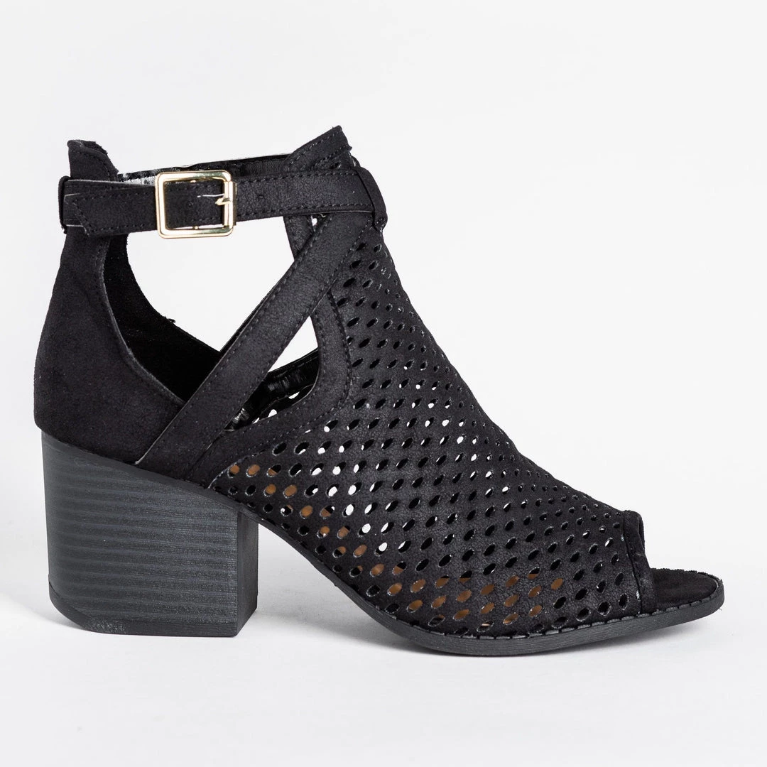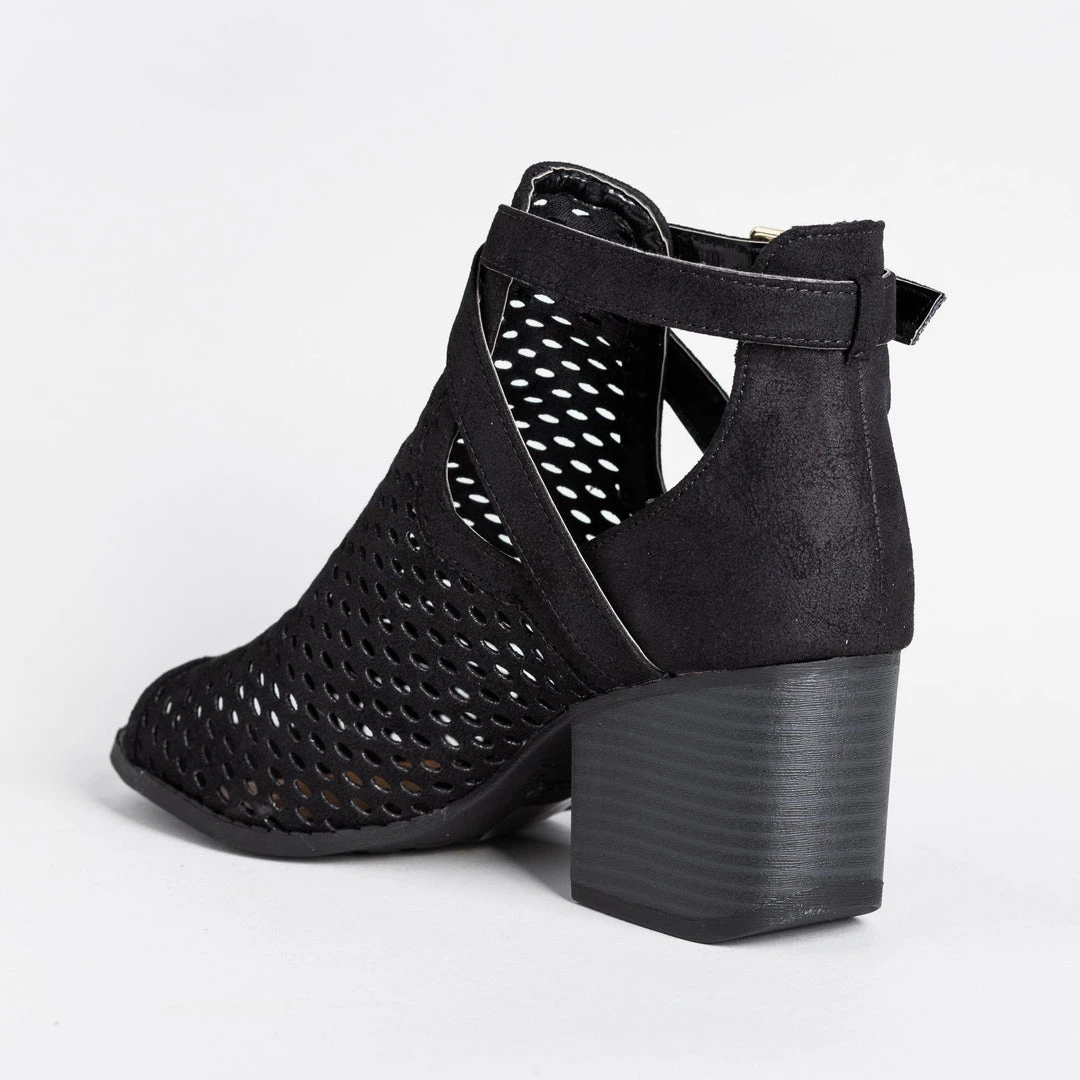 We guarantee that you’ll be falling head over heels in love with these Qupid Shoes Core-114X open-toed ankle booties! These beautiful booties are made out of faux leather and feature a 3″ stacked block heel and lovely open-toe design. The adjustable ankle strap makes it easy to put these shoes on and take them off, while the side cutouts gives these shoes a trendy touch. Finishing off these booties is the gorgeous mesh design, making these booties perfect for the warm weather. Wear these booties with a t-shirt dress for a cute, dressed-up everyday look! Made with all man-made/vegan materials.Â