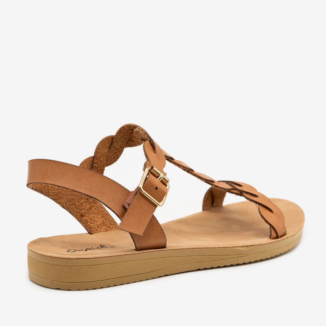 Add a fun twist to your look with these Qupid Shoes Flex-04 sandals! Designed with faux leather, these sandals feature an open toe and t-strap body with twisted bands for a pretty, dressed up look. The sole has light rubber tread and an extra-cushioned insole helps keep your feet comfy all day. A slingback ankle strap adds extra support and an outer side buckle lets you adjust for the perfect fit and slip these beauties on and off with ease. Available in classic black and tan as well as a shimmery rose gold, these sandals are great for styling with any summer look! Dress them up by pairing them with a sundress and cropped jacket or keep it casual by wearing them with jeans and a comfy t-shirt! Made with all man-made/vegan materials and runs true to size.