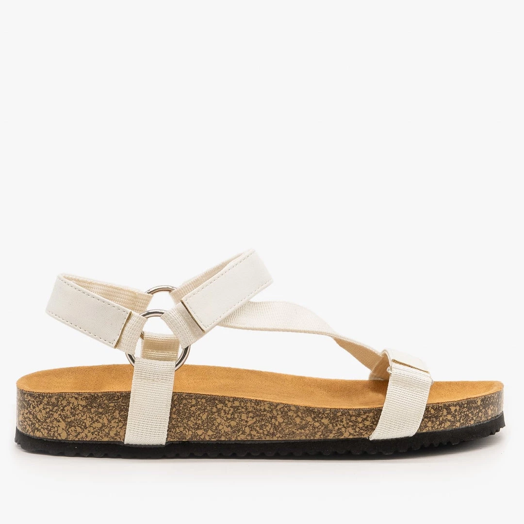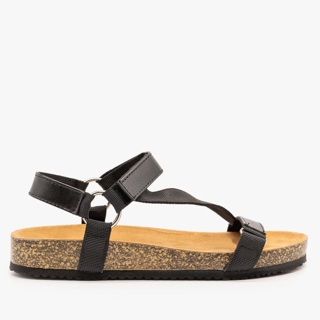 For a simple, functional summer shoe, look no further than these Qupid Shoes Luka-17XX sandals! These cute sandals have a trendy cork sole with light rubber treading and an open toe design. These sandals have a diagonal t-strap design with woven nylon bands that are accented with faux leather. The strap over the ankle is an adjustable Velcro clasp, making these sandals easy to slip on and off. Pair these sandals with daisy duke shorts and a cropped hoodie for a super cute and casual beach day look! Made with all man-made/vegan materials and runs true to size.