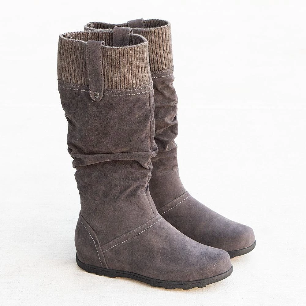 Get the perfect fit every time with our Refresh Elma-03 boots. These gorgeous boots are crafted with a faux-suede material that covers the entire shoe and rises to meet the calf. A comfy and stretchy ribbed opening allows for easy slip on and off wear while maintaining a perfect fit. Lightly padded insole as well as a flat outer sole make these boots comfortable to wear all day long. With three natural tones you can pair these shoes with just about anything! pair these with black denim jeans and a comfy pullover for a cozy winter look this season.Â