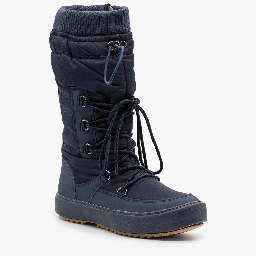 Get ready to hit the slopes in these Refresh Shoes Youth-01 snow boots! Designed with faux leather and nylon, these boots feature sturdy rubber tread, a rounded toe and a lace up design that ensures a snug fit. They rise to the lower calf with a puffy body and have a sweater knit cuff for a little extra style as well as a drawstring top to keep any snow out! Pair these cozy winter boots with fuzzy socks, dark wash skinny jeans and a warm winter jacket and you’ll be ready for a fun day in the snow! Made with all man-made/vegan materials and runs true to size.