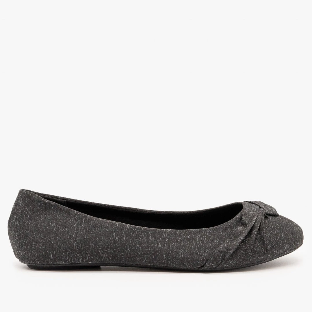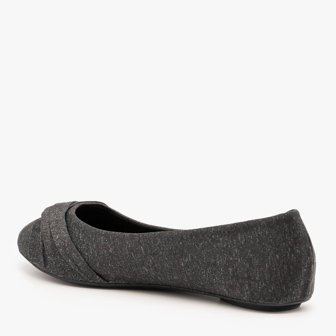 Keep it sweet and simple in these Refresh Shoes Fancy-08 ballet flats! These cute flats feature a classic slip on design and a small almond shaped toe. The dark heather gray gives these flats a little depth and texture and the small ruching detail on the toe completes the look! Pair these flats with anything in your closet from denim overalls and a basic tee to fitted ankle pants and a blouse! Made with all man-made/vegan materials and runs true to size.