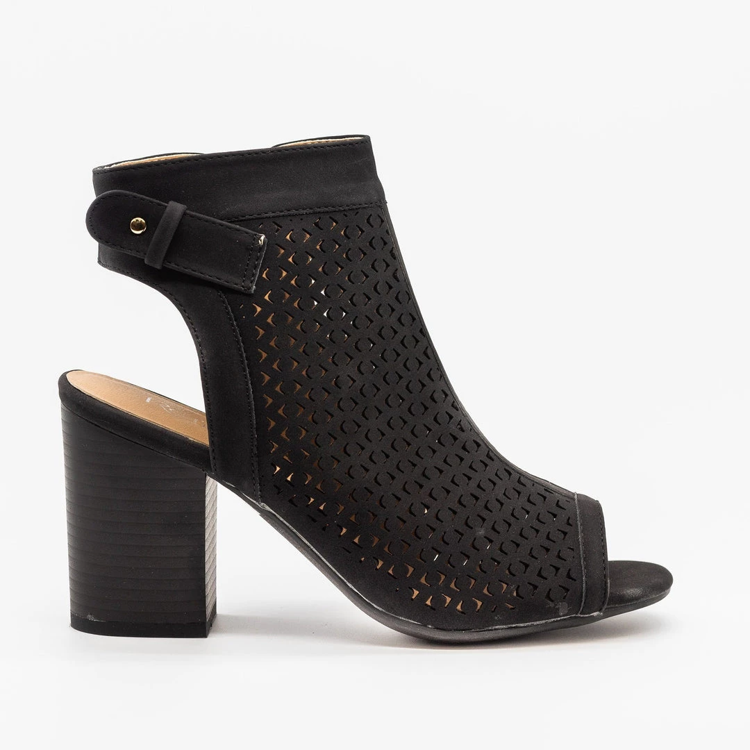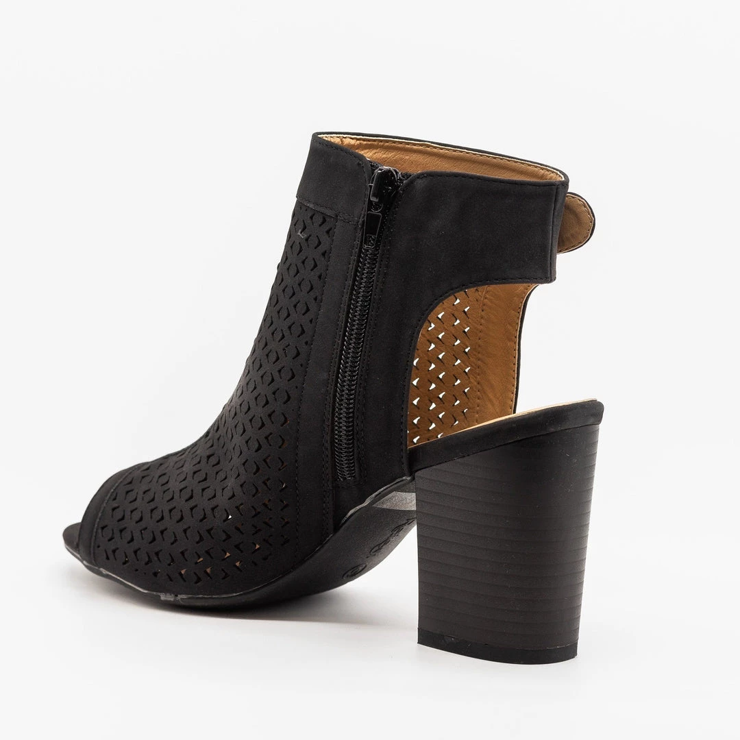 Fall in love with these beautiful Refresh Shoes Hannah-03 heeled booties! These beauties are made out of faux suede and feature an interior side zipper for easy on/off access. The 3″ stacked chunky heel gives these shoes some added height while the trendy open-toe style makes these booties look super adorable. The laser cut design throughout the shoes give add a lovely finishing touch. Pair these shoes with some high-waisted ankle jeans and an off-the-shoulder top for a cute weekend outfit! Made with all man-made/vegan materials.