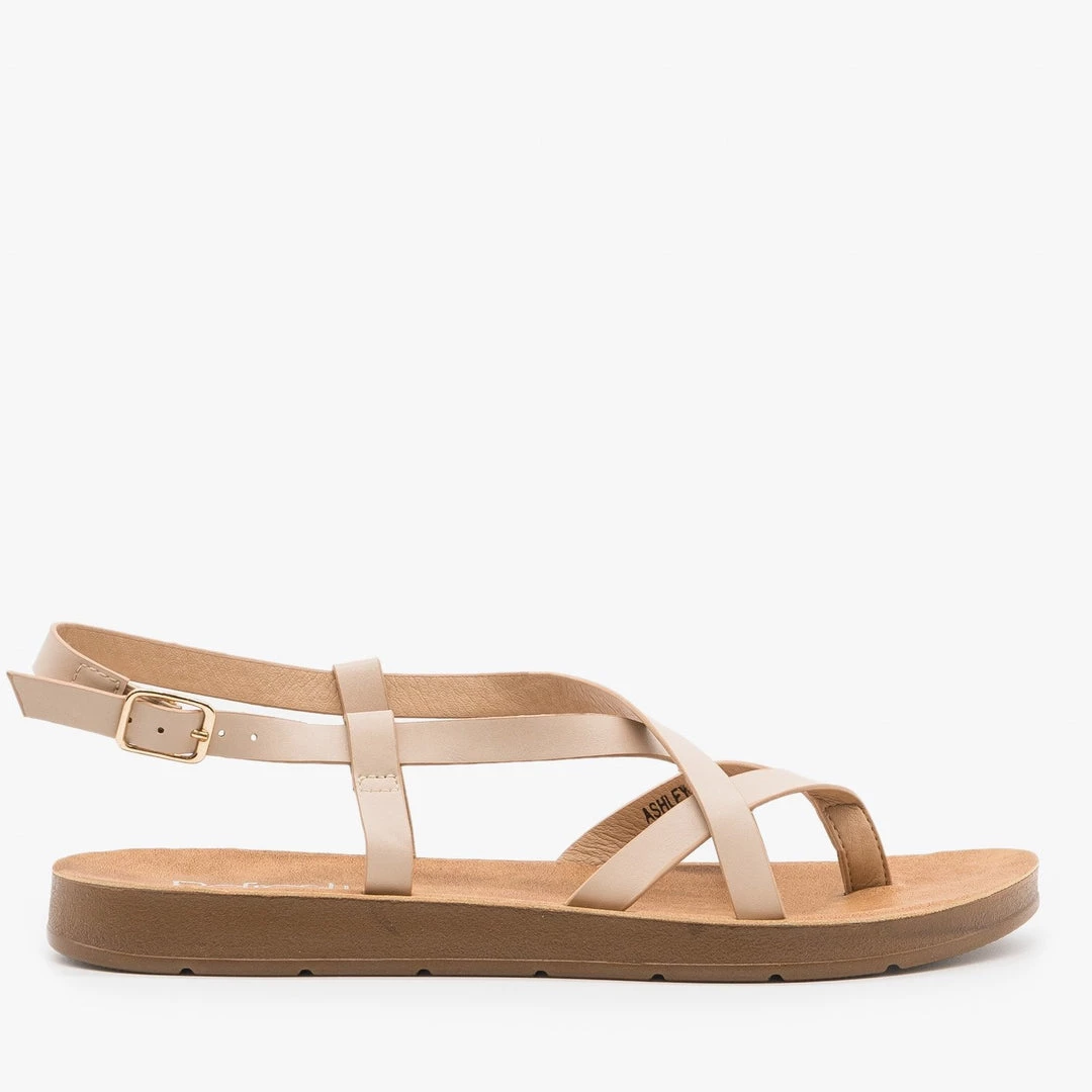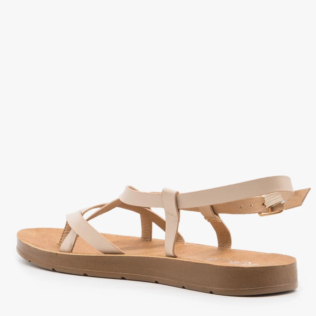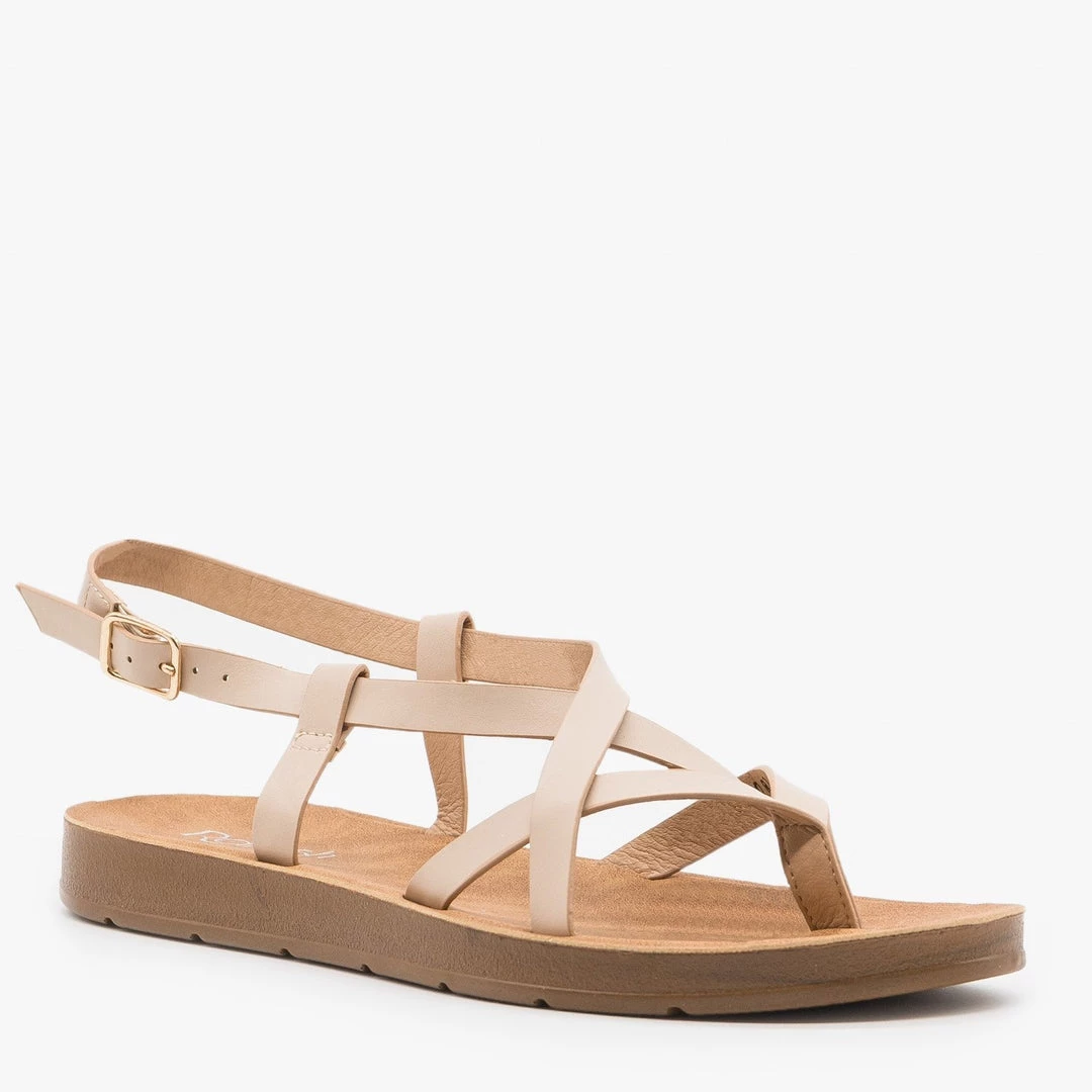 Step into a pair of these Refresh Shoes Ashley-10 sandals to complete all your favorite outfits! Made out of faux leather, these sandals feature a slingback-style adjustable ankle strap for easy on/off access and a thong-style toe design. The criss crossing design gives these shoes a beautiful finishing touch while the cushioned insoles provide maximum support and comfort. Wear these sandals with a pair of rolled cuff high-waisted denim shorts and a basic sleeveless bodysuit for the cutest summer outfit! Made with all man-made/vegan materials.
