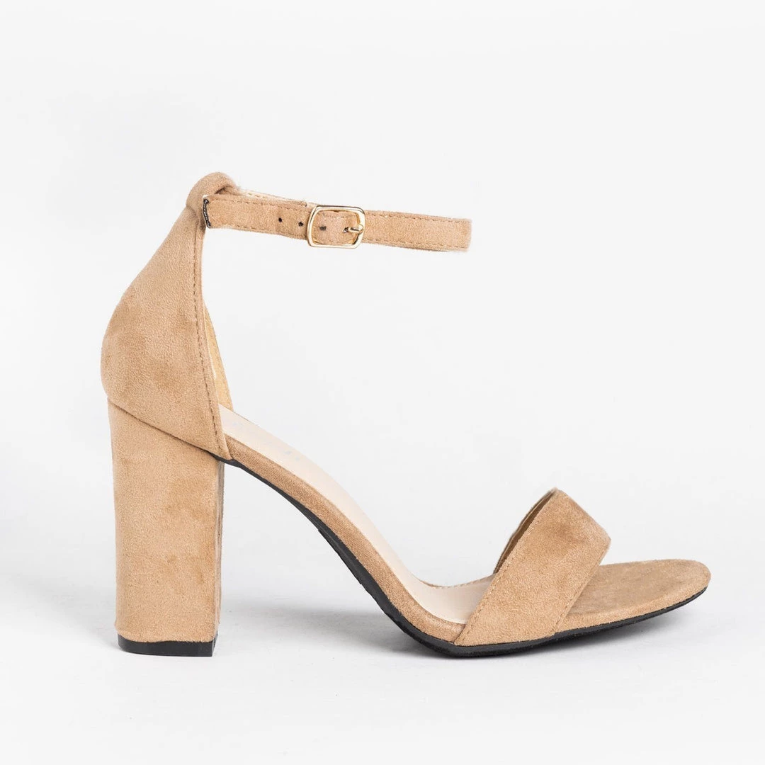 Dance the night away in these Refresh Shoes Lynn-03 high heels! Beautifully crafted out of faux suede, these heels feature a 4″ chunky heel for sky-high style. The trendy open-toe design gives these shoes extra style, while the dainty adjustable ankle strap provides easy on/off access and support. Pair these heels with some high-waisted ankle jeans, a basic bodysuit, and a faux leather jacket for the perfect girls’ night out look! You can even wear these heels with a flowy halter dress for a sexy salsa-dancing outfit! Made with all man-made/vegan materials.