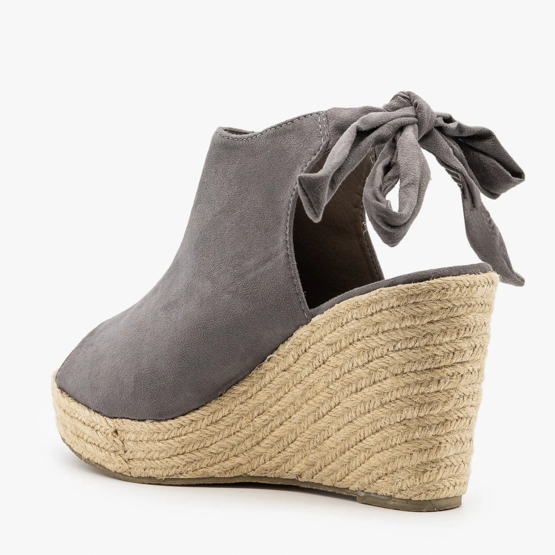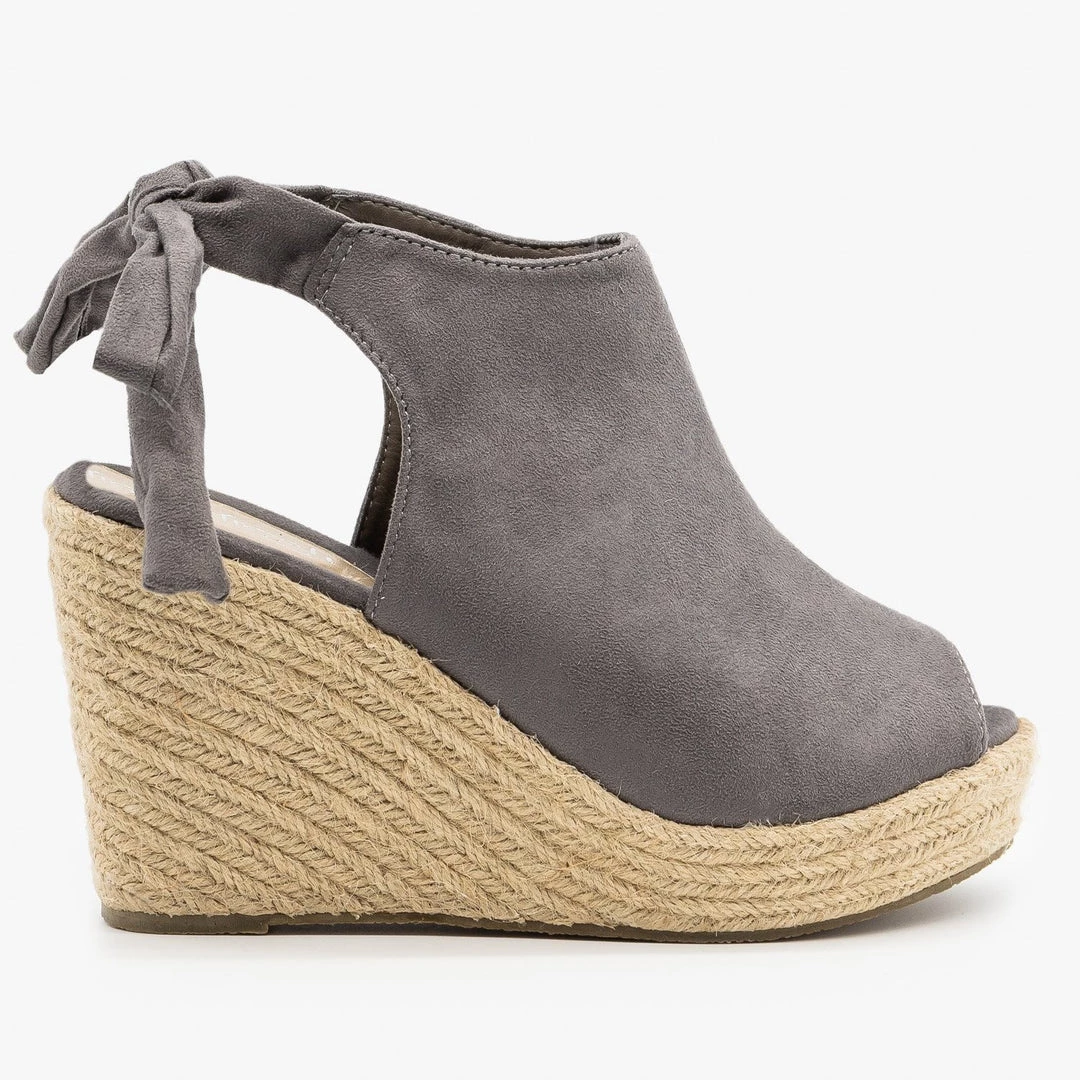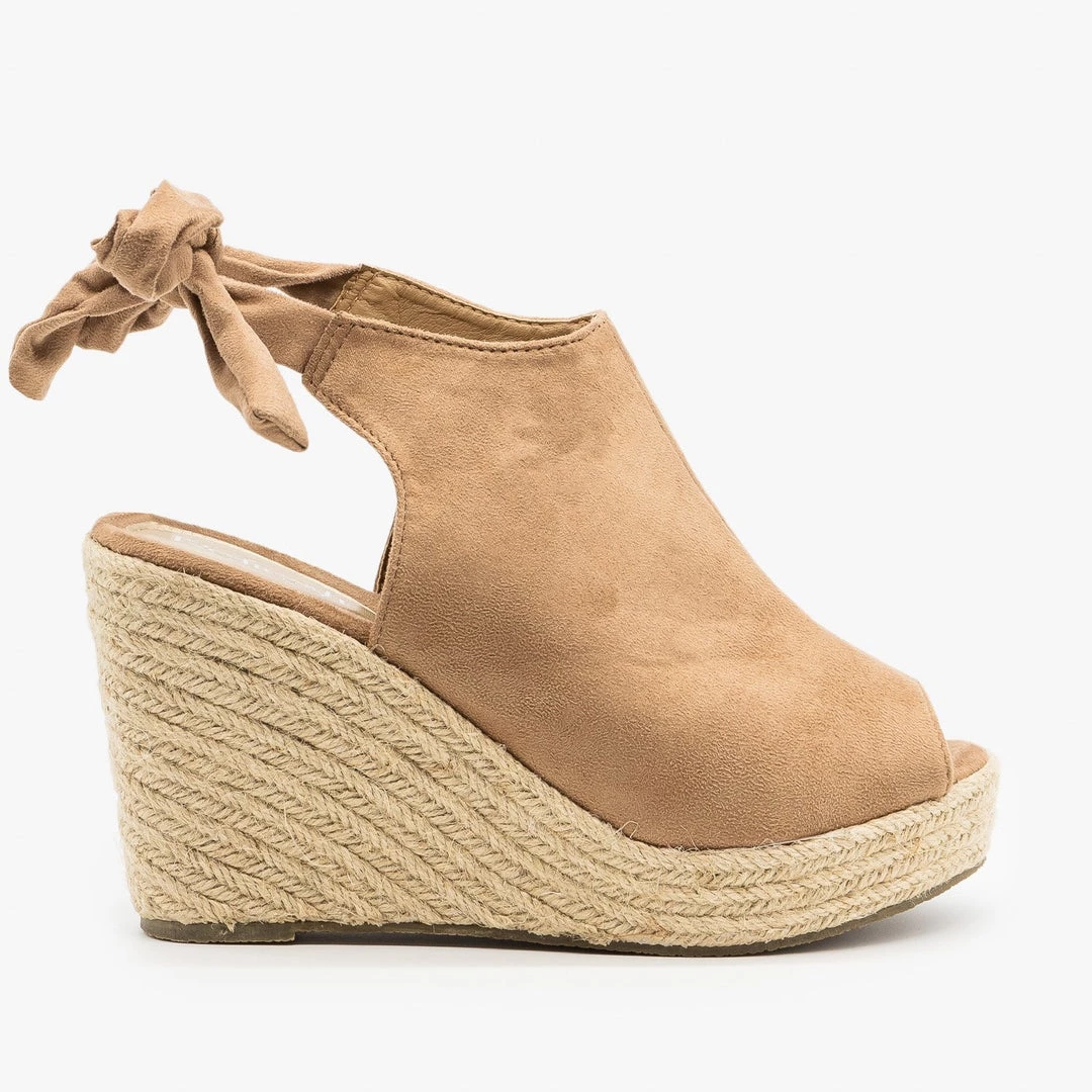 Touch the sky with these gorgeous Refresh Shoes Emery-03 espadrille wedges! Beautifully crafted out of faux suede, these sandal wedges feature a lovely open-toe design and an adorable ankle tie feature that can be knotted in the back. The 4.5″ espadrille wedge also gives these sandal wedges just the right amount of height and sass, while the back heel cutout gives these shoes some extra style. Pair these wedges with some high-waisted ankle jeans and a flowy cold-shoulder top for the perfect weekend brunch outfit! Made out of all man-made/vegan materials.