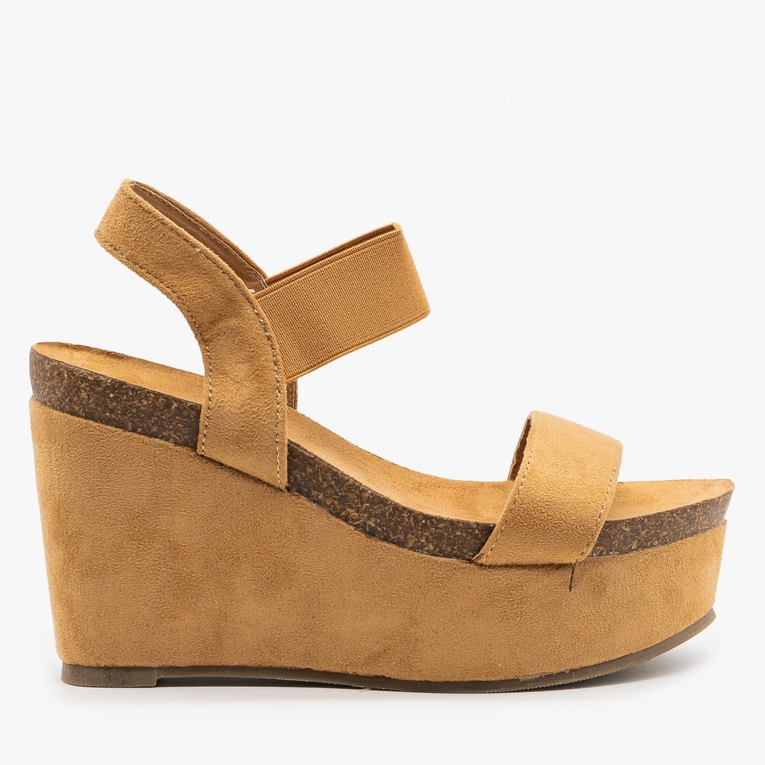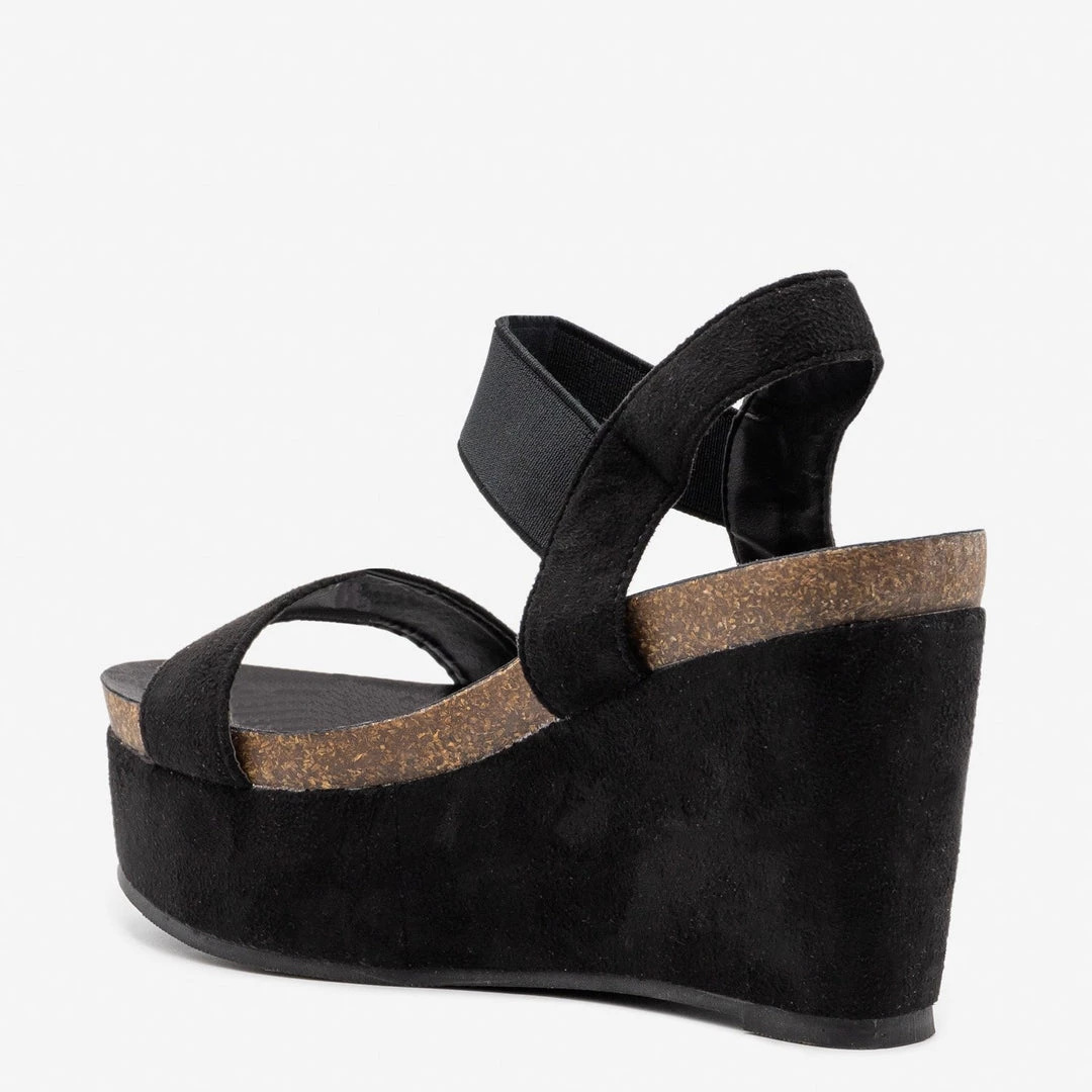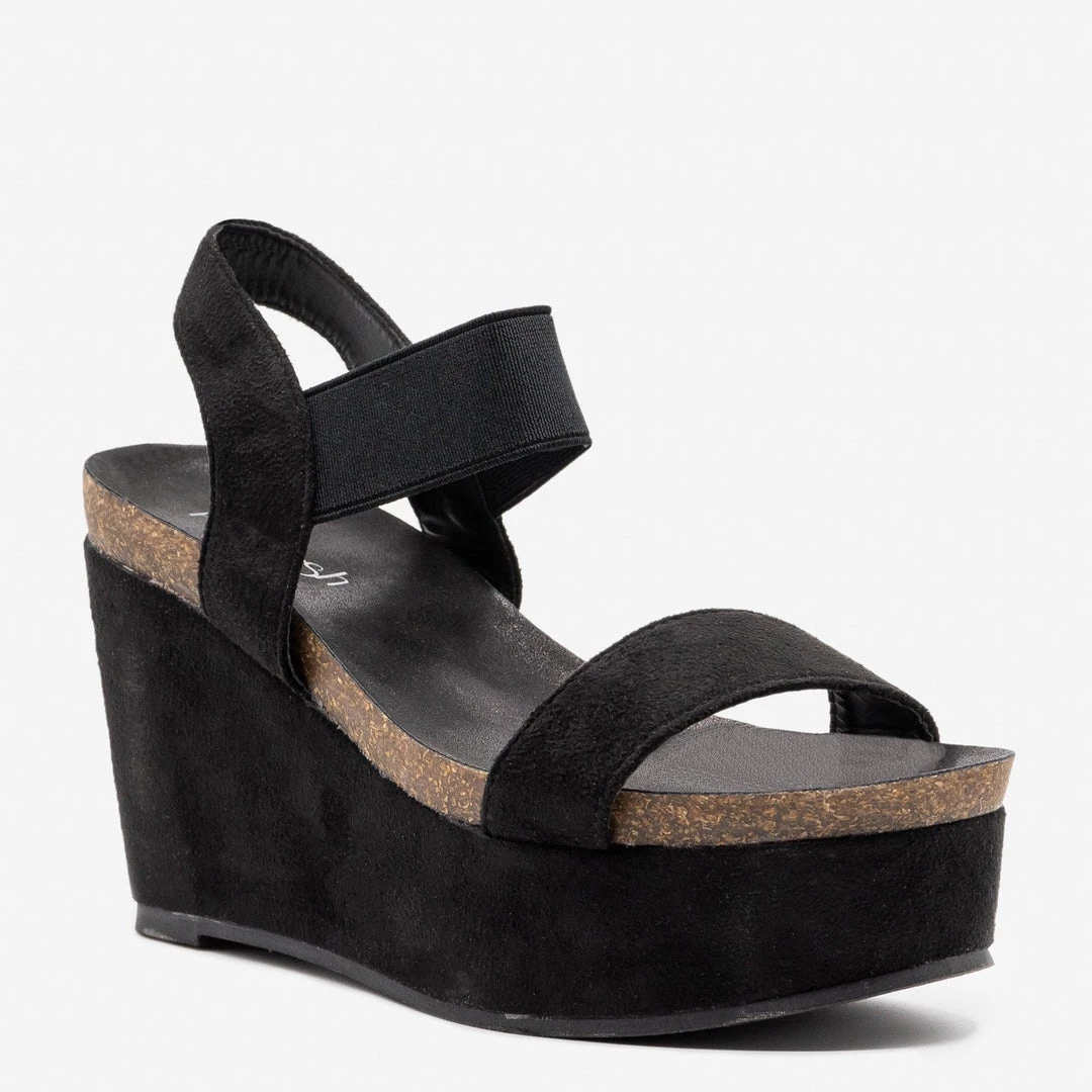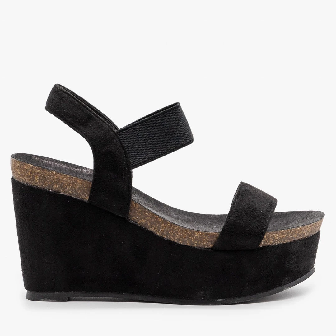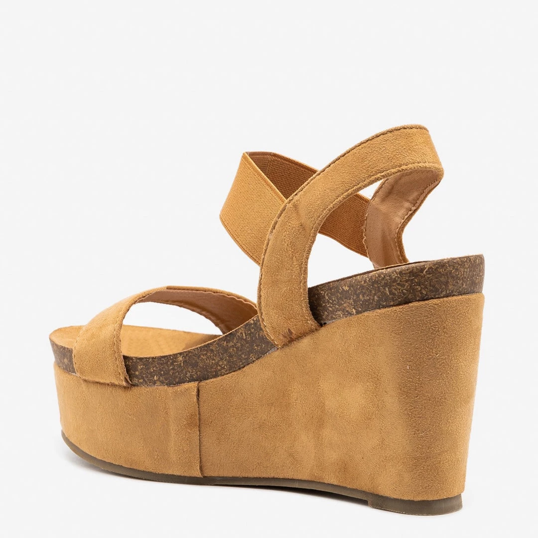 Strut your stuff in style with these Refresh Shoes Gracie-03 comfy platform wedges! Made out of faux suede, these wedges feature a 4″ wedge and a 2″ platform for extra style. The comfy cork insoles make these shoes great for wearing all day long while the velcro ankle strap makes it super easy to put these shoes on and take them off. Wear these platform wedges with some high-waisted ankle jeans and a cropped basic tank for the perfect summer outfit! Made with all man-made/vegan materials.