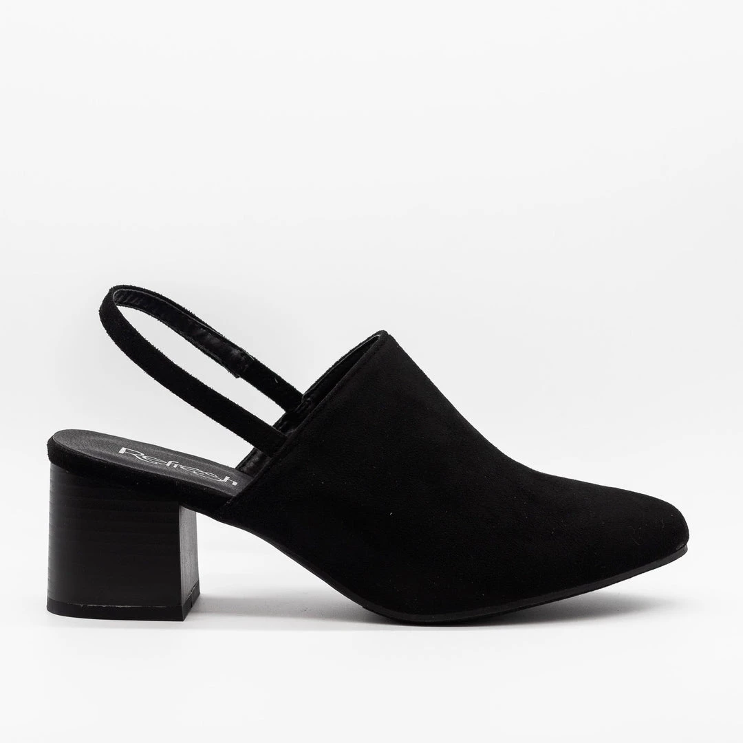 You’ll be named “Best Dressed” in these Refresh Shoes Tonya-01 chunky low heels! Beautifully crafted out of faux suede, these heels feature a slingback-style ankle strap for comfort and support and an almond-shaped toe for a classy, posh look. The 2″ stacked chunky low heel gives these shoes some height and sass. Pair these adorable heels with some raw hem ankle jeans and a ruffled cropped off-the-shoulder top for an adorable brunch outfit! Made with all man-made/vegan materials.