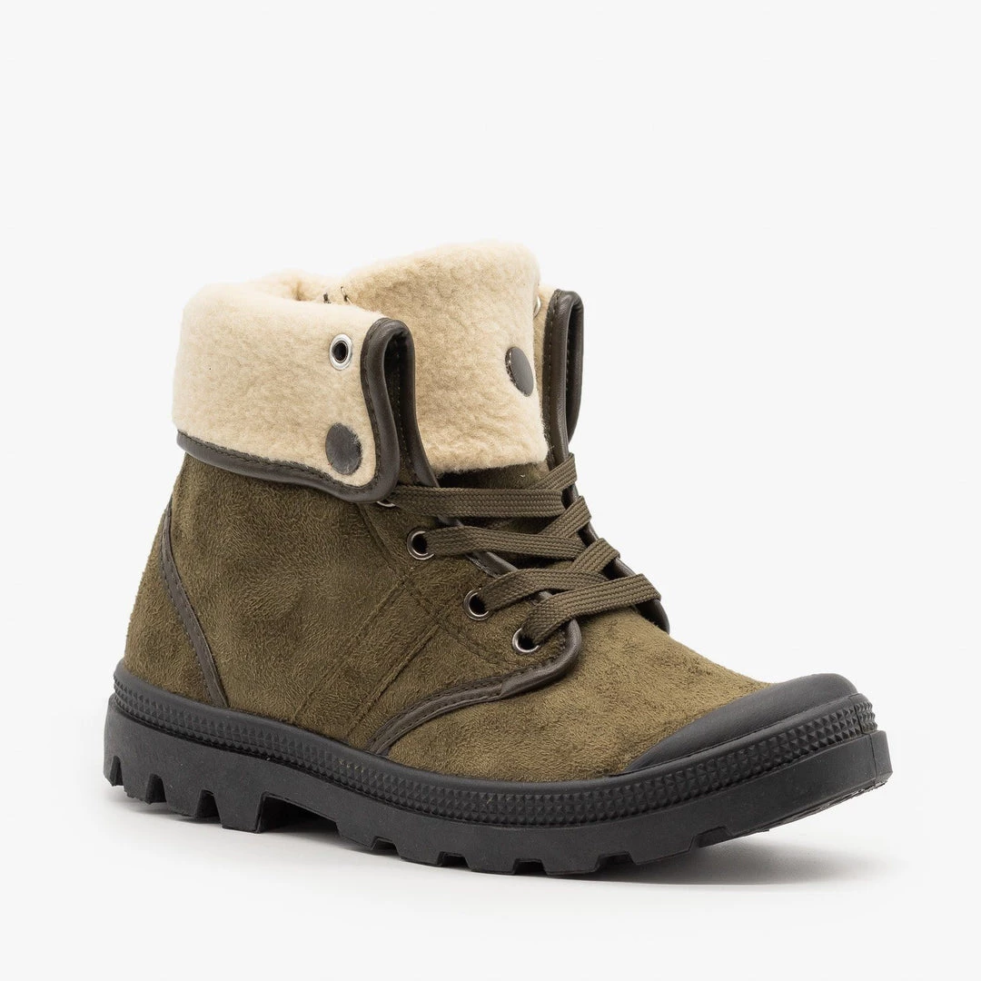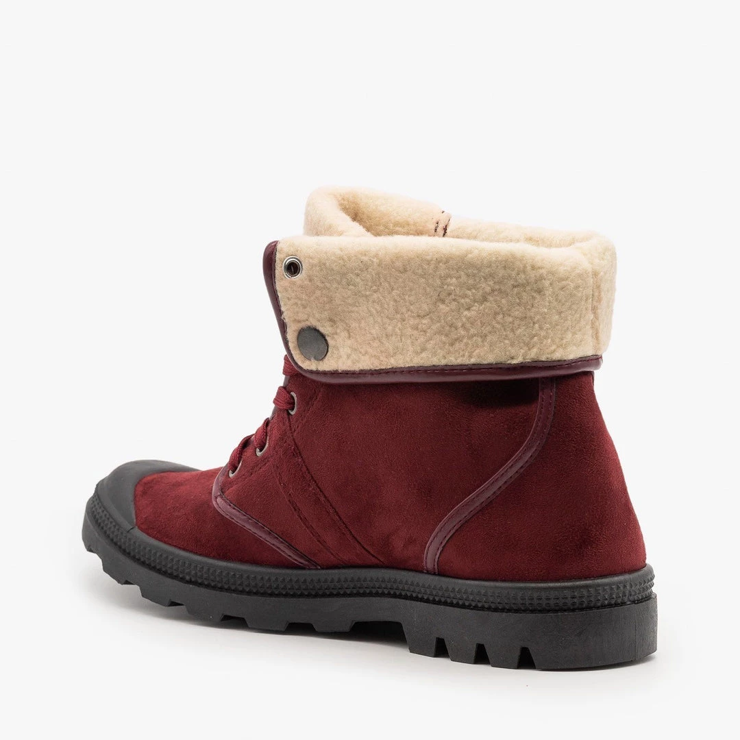 The Refresh Shoes Evan-01 boots wrap up cute and cozy all in one! Crafted with faux suede, these boots feature deep rubber tread and a rubber-capped toe so you’ll be ready for the elements. You can wear these boots with the topped folded over to create a cute faux sherpa cuff or you can unsnap the top and fold it up to keep you even warmer. Pair these boots with warm socks, distressed skinny jeans, an earth-toned sweater and gold jewelry for a trendy winter look! Made with all man-made/vegan materials and runs true to size.