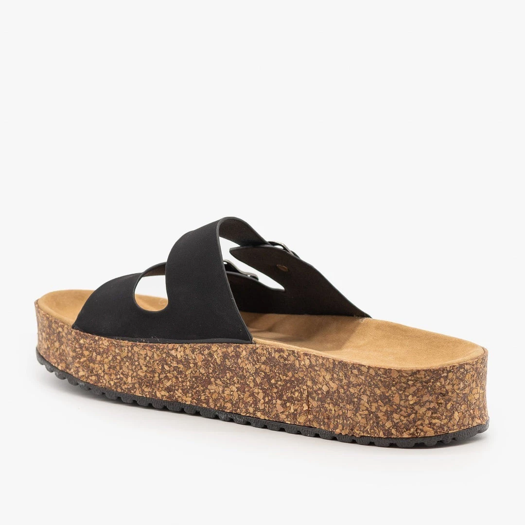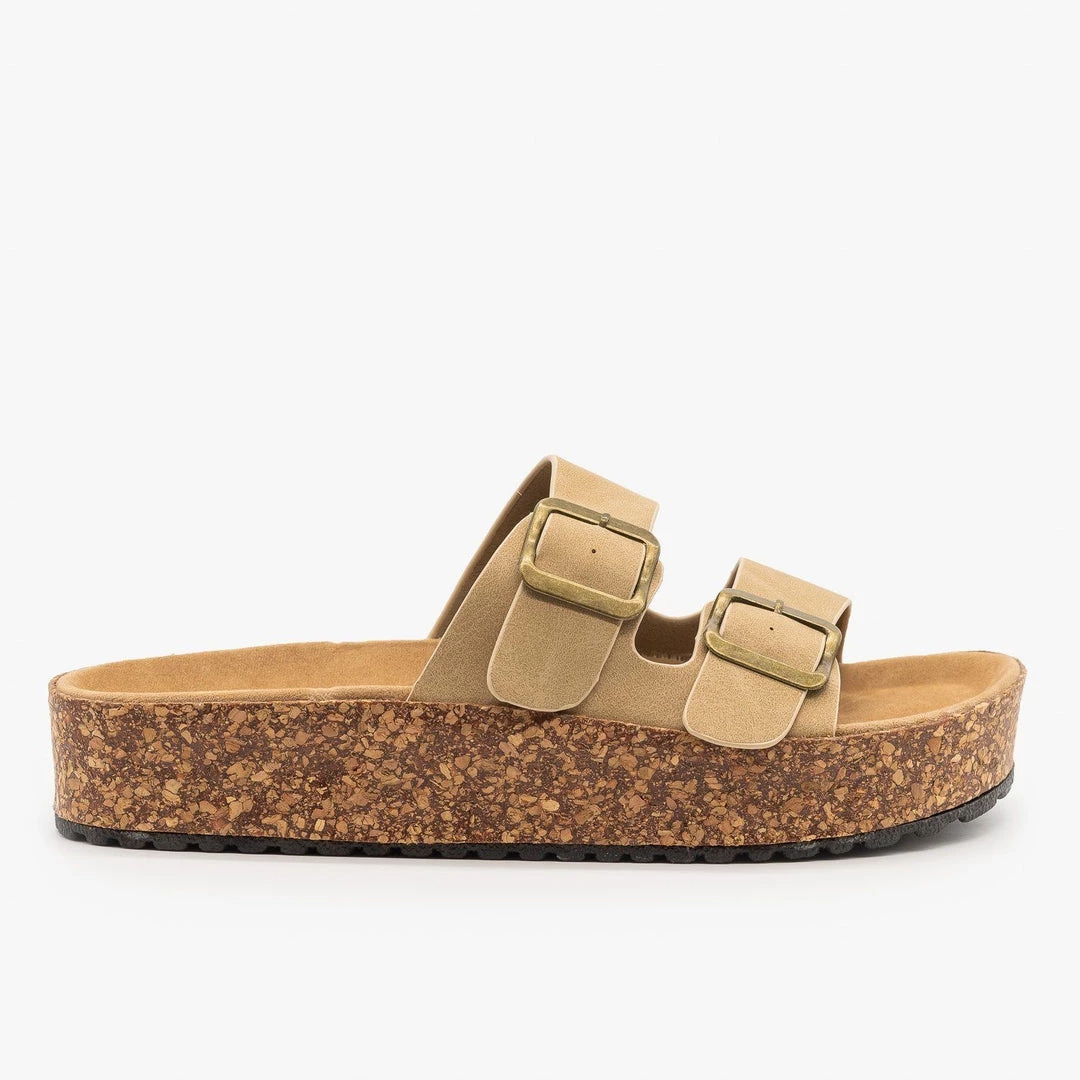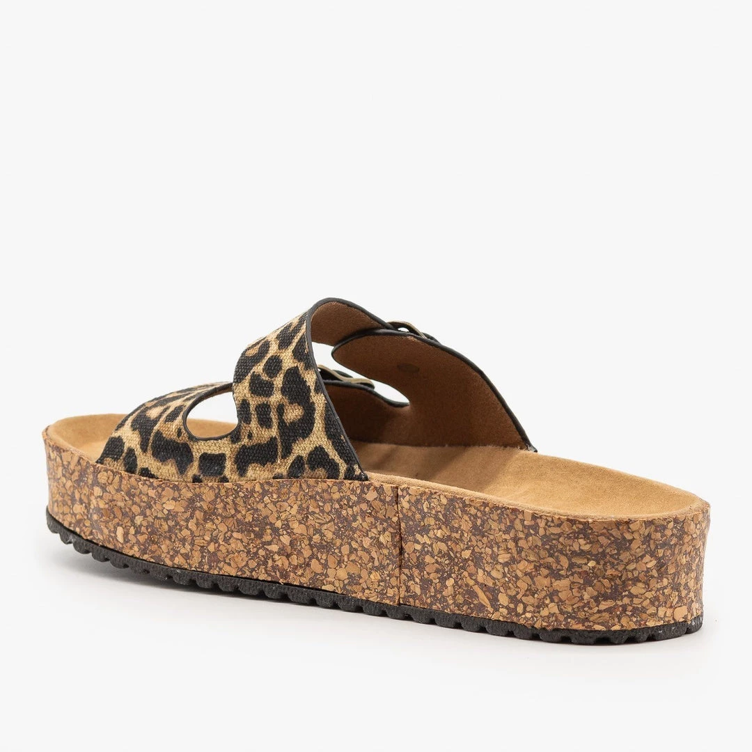 Be the trendiest fashion-setter on the block in these Refresh Shoes Ali-01 slip-on sandals! These super stylish sandals are made out of faux nubuck or canvas material (leopard) and feature an easy-to-wear slip-on design for practicality. The double buckle design is super trendy and the 1.5″ cork platform provides comfort and height. You can wear these sandals with everything from jeans to t-shirt dresses! Made with all man-made/vegan materials.
