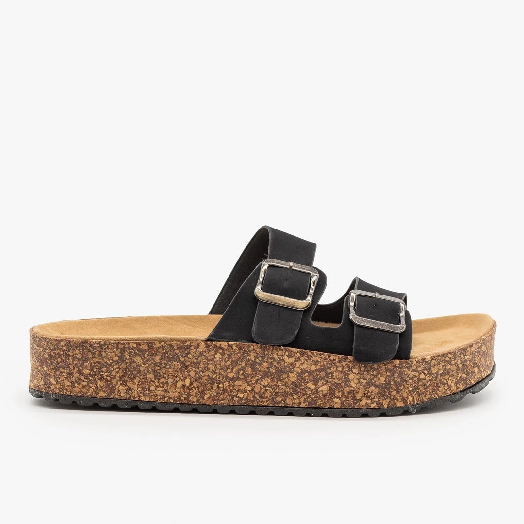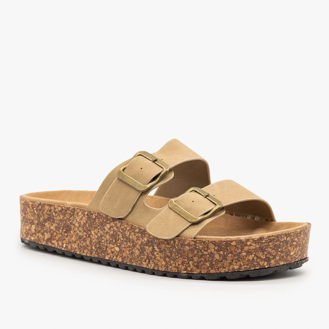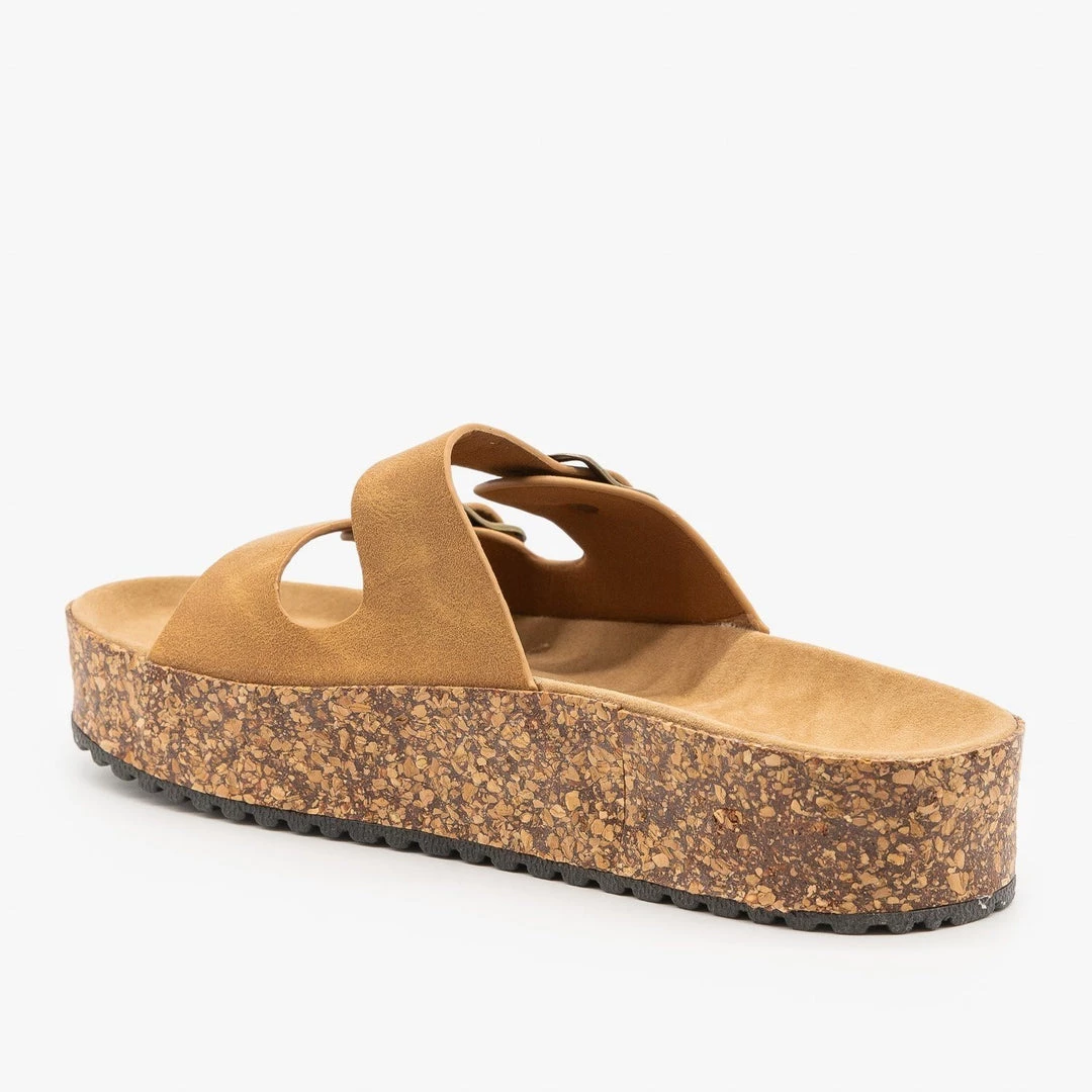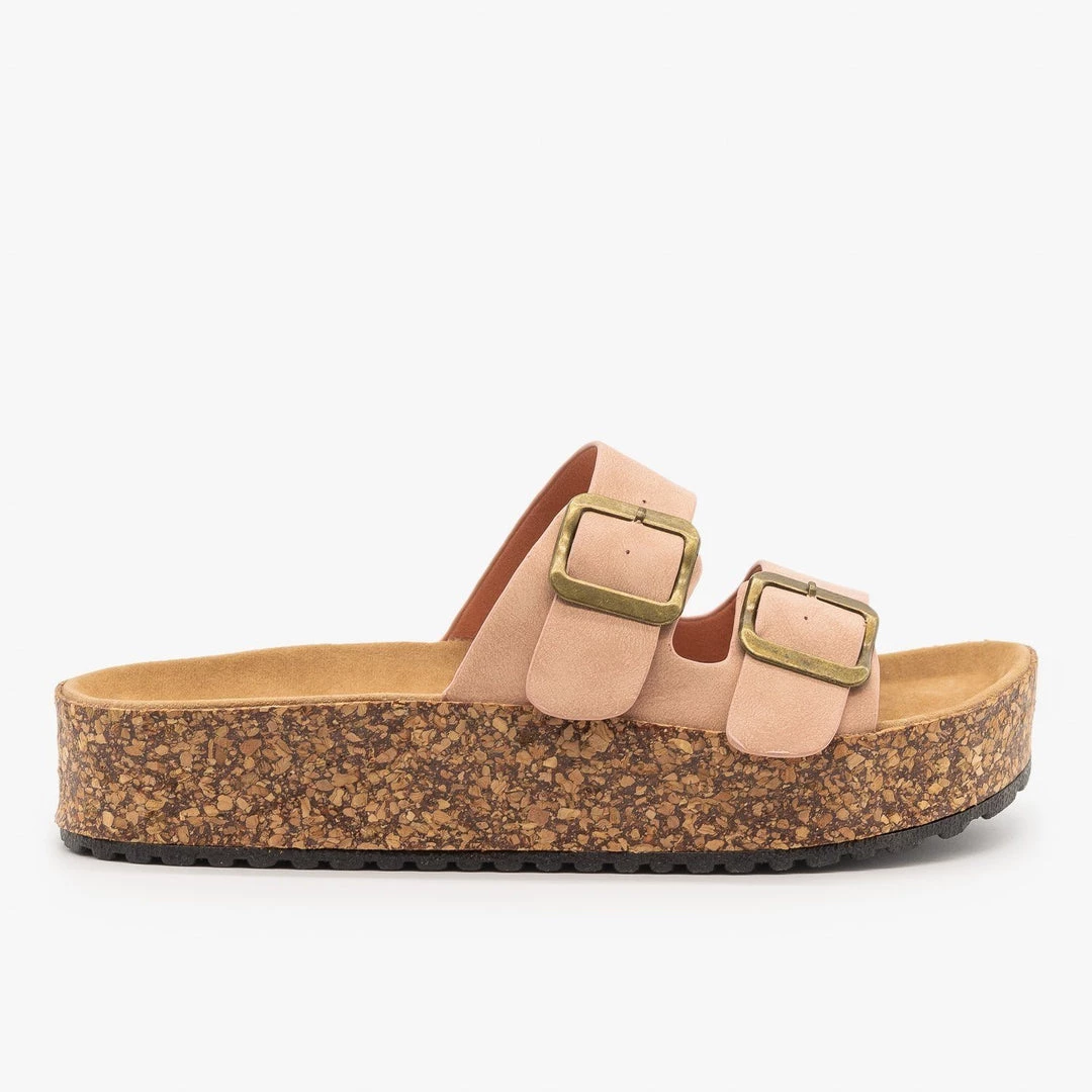 Be the trendiest fashion-setter on the block in these Refresh Shoes Ali-01 slip-on sandals! These super stylish sandals are made out of faux nubuck or canvas material (leopard) and feature an easy-to-wear slip-on design for practicality. The double buckle design is super trendy and the 1.5″ cork platform provides comfort and height. You can wear these sandals with everything from jeans to t-shirt dresses! Made with all man-made/vegan materials.