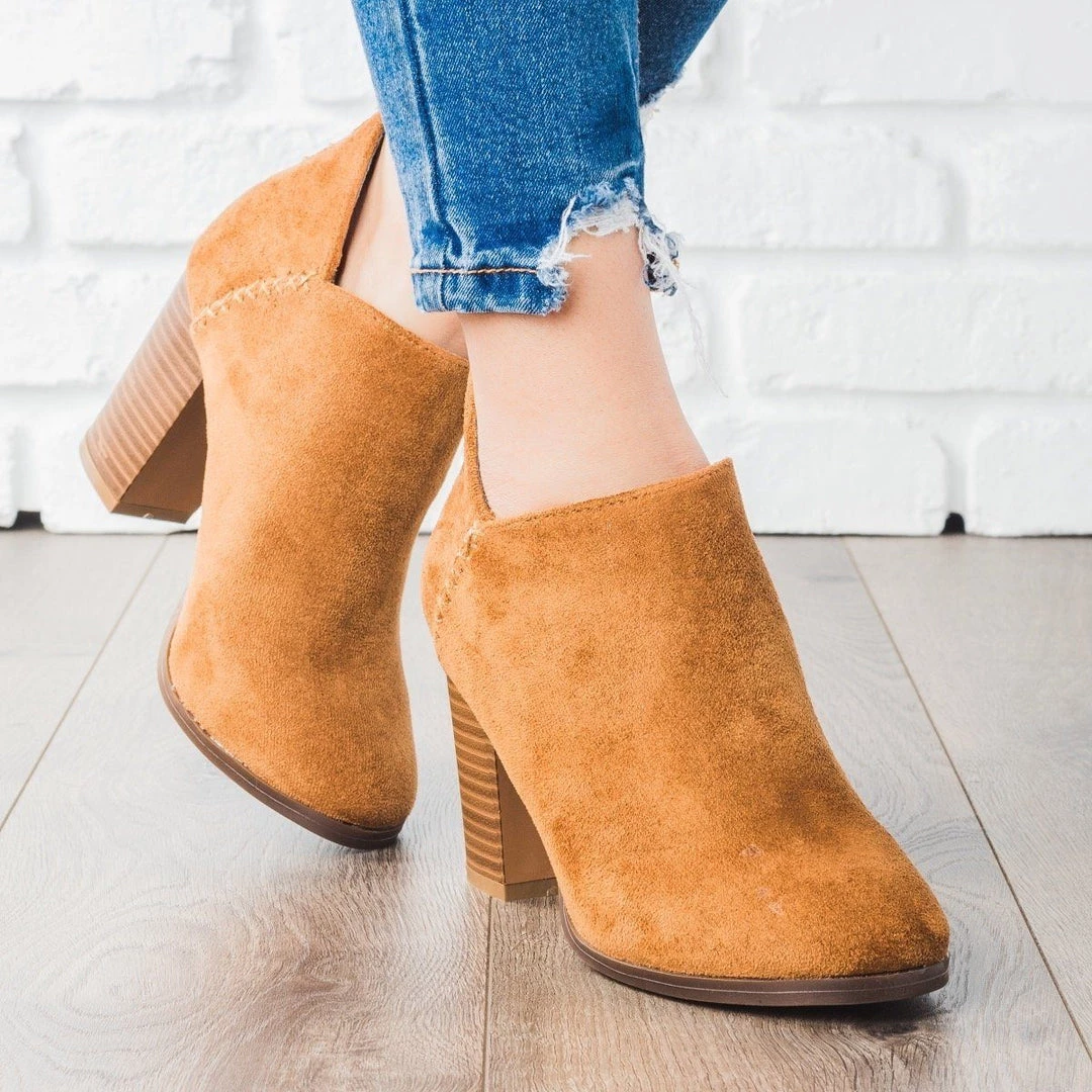 Need something sassy to complete your outfit? Check out the Refresh Shoes Sharpay-02 ankle booties. These booties are not made for the weak of heart! Crafted out of faux suede, this bootie has an almond shaped toe, gorgeous stitched detail along the sides, a v-cut design on both sides of the ankle, a back zipper, and a 4” chunky heel. Oooh yeah! These booties will add a little extra oomph to your look! Wear these with ankle jeans and an over-the-shoulder top for a cute brunch outfit, and then pair them with a fun mini dress for a sassy nighttime look. Available in different colors and fun designs, these booties are a must-have! Made with all manmade/vegan materials, and runs true to size.