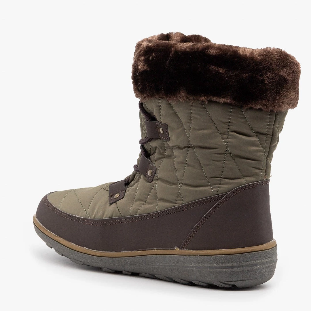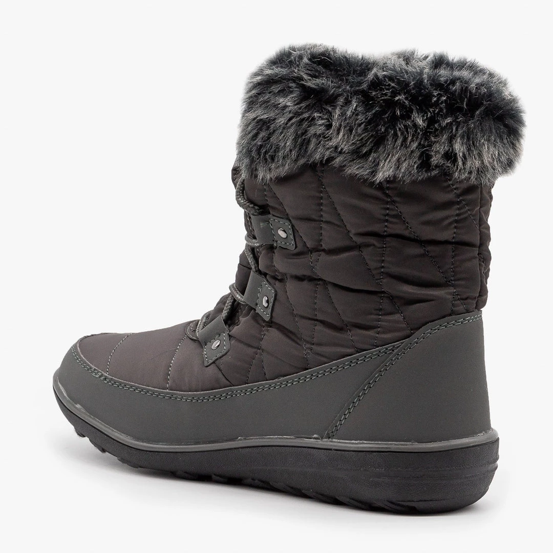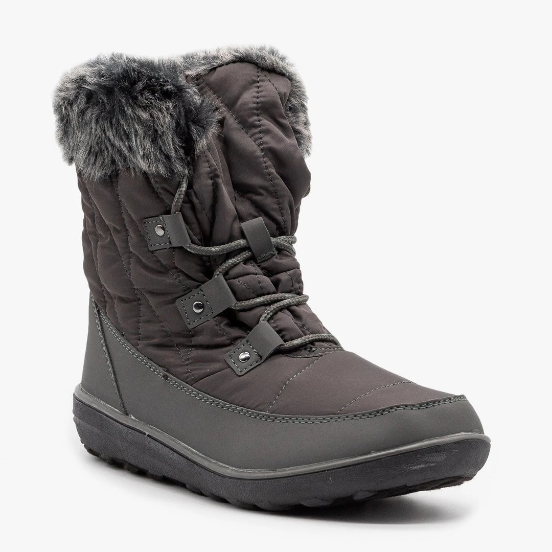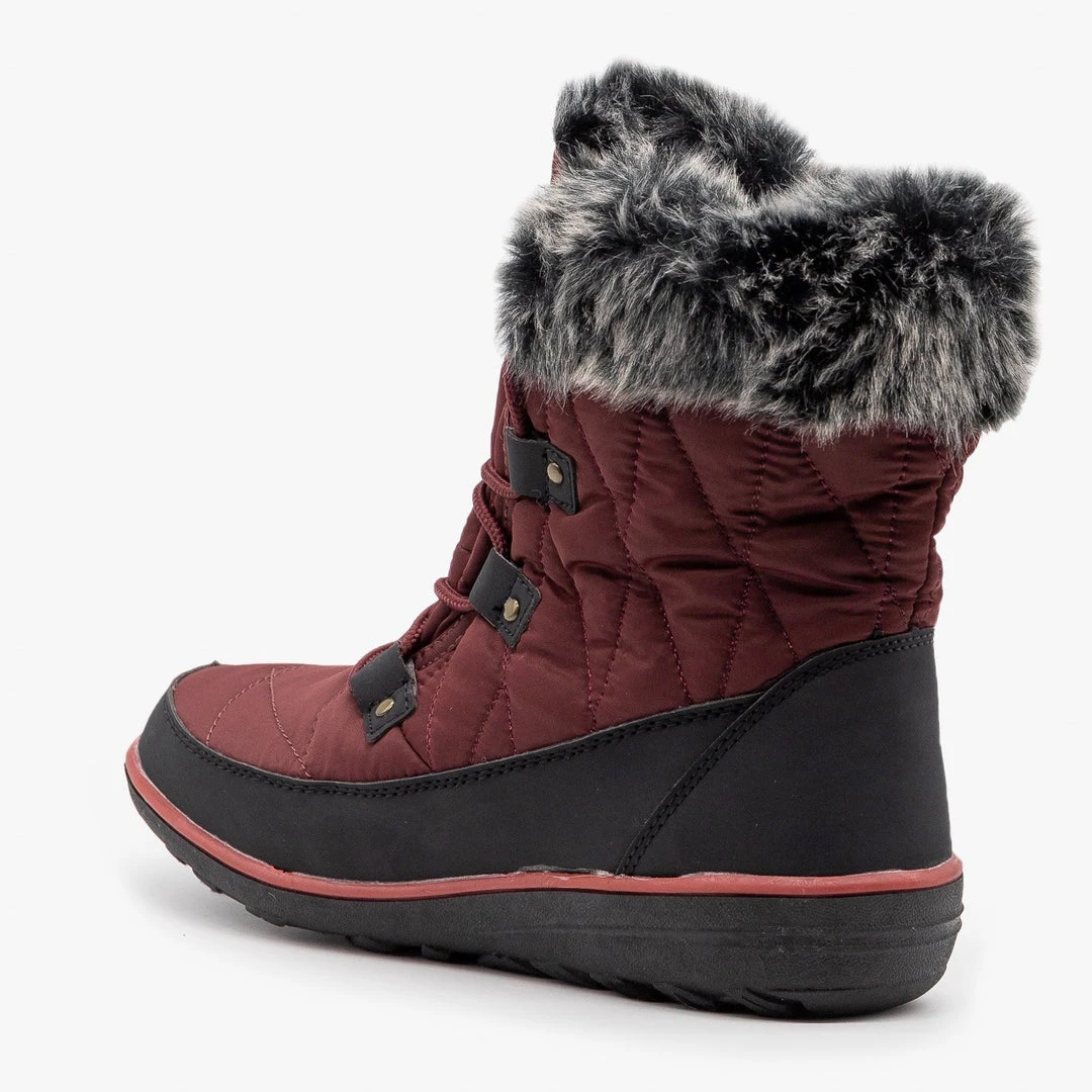 Conquer those winter blues in these cozy Refresh Shoes Hike-02 snow boots! Designed with faux leather, these boots feature sturdy tread, a rounded toe and a lace up design to keep them nice and snug. The body of these boots rises to just over the ankle and is a cute quilted style made with a nylon material. A color-coordinated faux fur cuff completes these wintry boots! Pair them with fuzzy socks, your favorite skinny jeans and a heavy knit sweater to stay toasty warm on a chilly winter day! Made with all man-made/vegan materials and runs true to size.