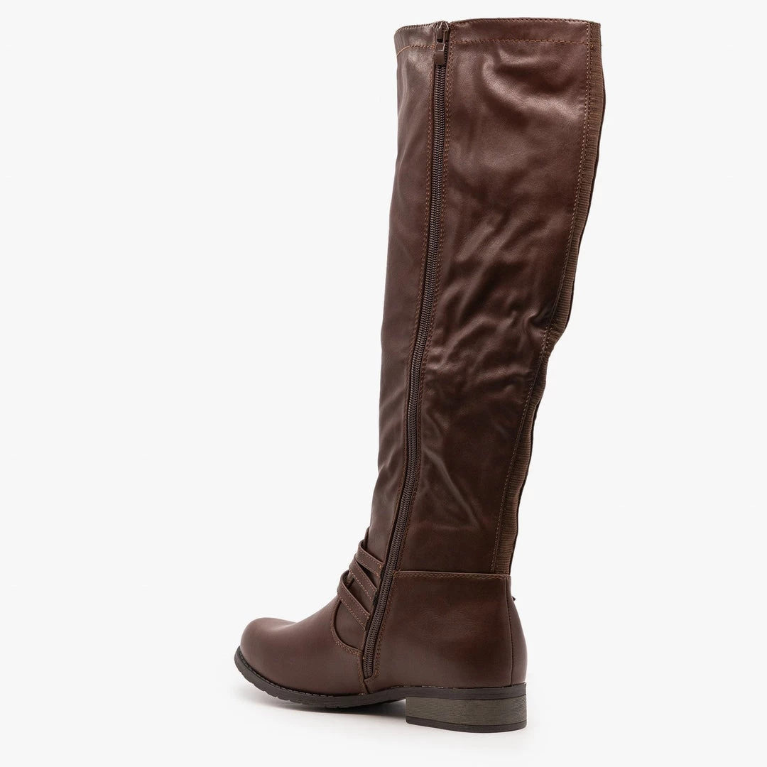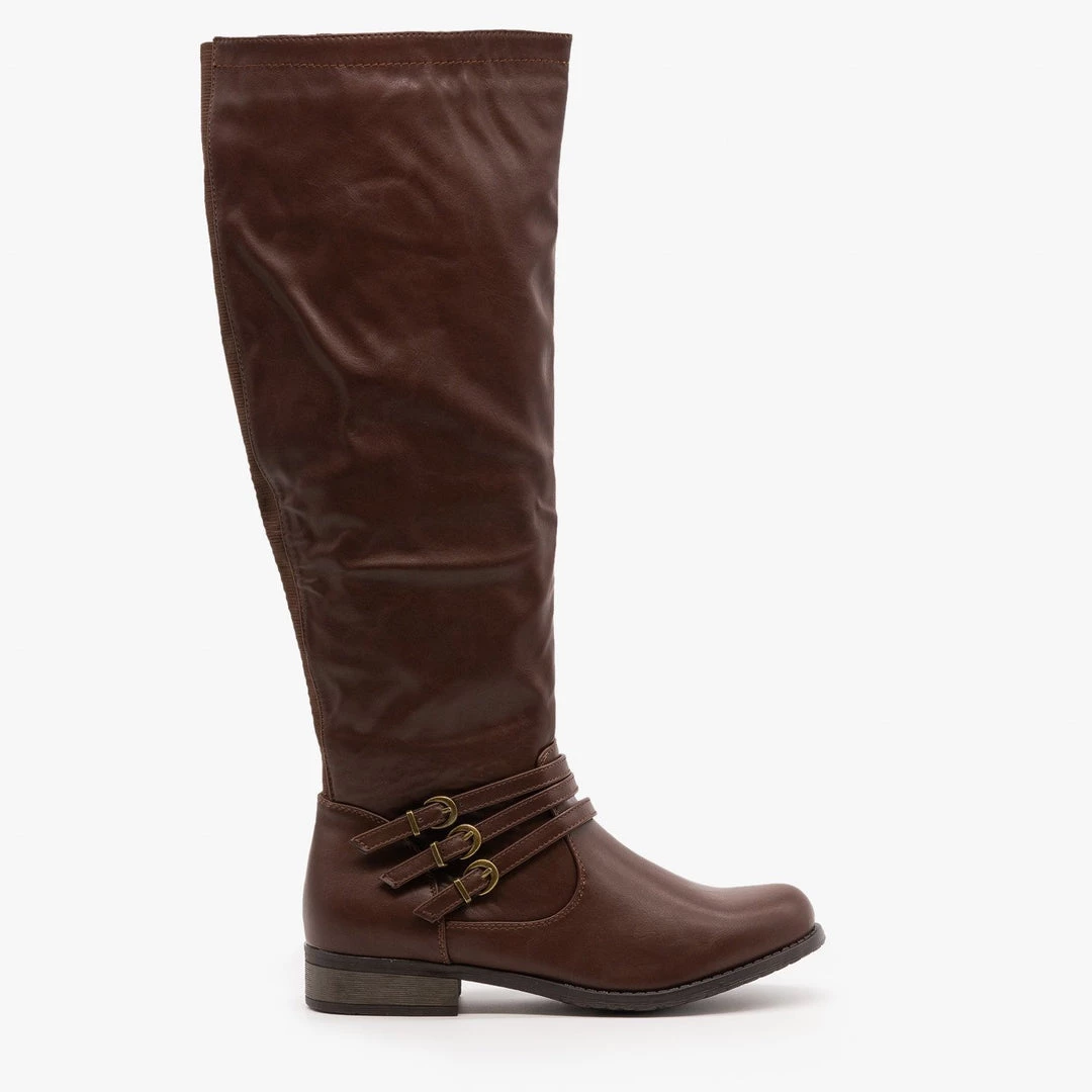 Ride into the sunset with these Refresh Shoes Merlot-11 riding boots! These gorgeous boots are beautifully crafted out of faux leather and feature a 1″ heel and a rounded toe, perfect for wearing all day, everyday. These boots also feature an interior side zipper which makes it easy for you to put these shoes on and take them off. The back of the boots also feature a soft elastic material that makes these shoes super comfy to wear. Finishing off these boots is a triple thin strap design that goees across the bottom part of the shoe and buckles on the side. Wear these boots with your favorite pair of leggings, an oversized chunky knit cardigan, and a scarf for the ultimate cold weather outfit! You can even wear these boots with tights, a pinafore dress, and a light cardigan for a look that will have you ready for warmer weather! Made with all man-made/vegan materials.