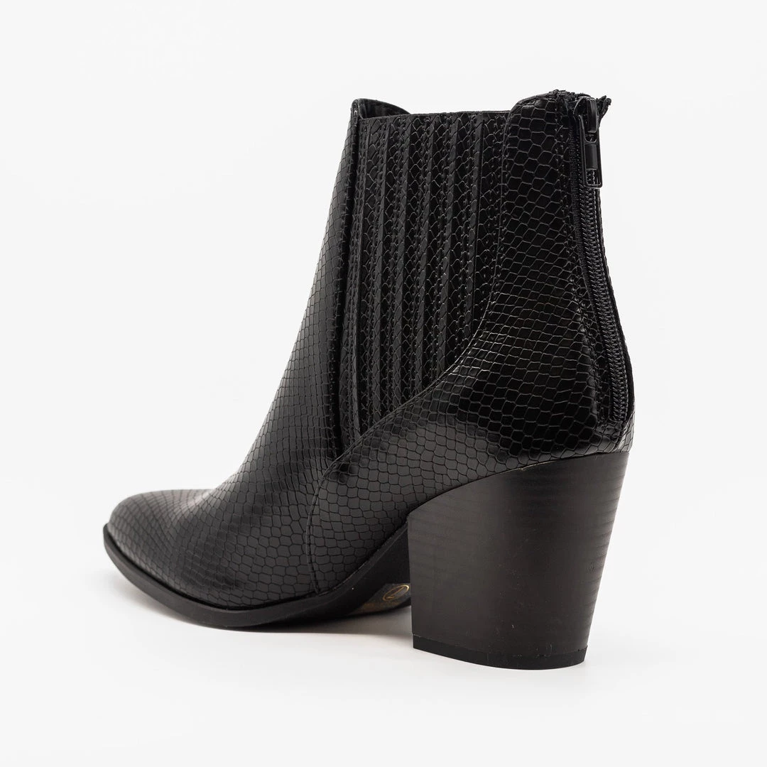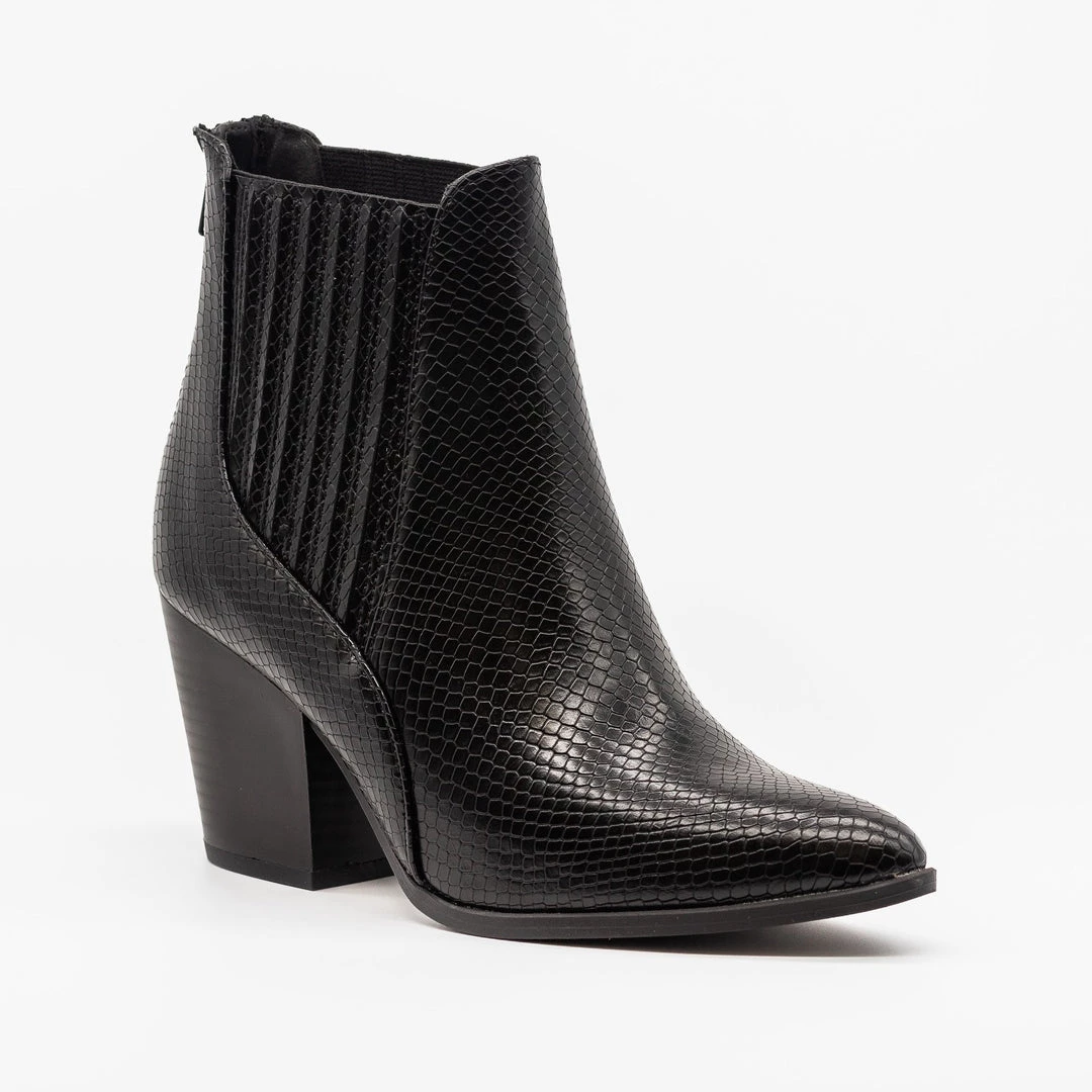 Theese gorgeous styles Soda Shoes Samuel-S are a perfect match for any Fall outfit. These booties feature a textured snake-skin like faux leather and feature a back zipper for easy off/on access. They have a 3.5″ chunky heel which will make dancing in these booties so fun and comfortable. The pointed toe will point you to the right direction. Pair these booties with a mini dress for a fun night out. These can either be styled up or down, depending on the occasion. Made with all man-made/vegan materials.