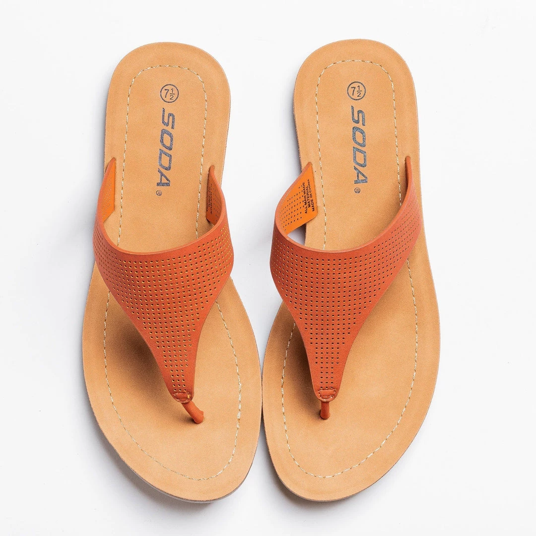You’ll have some happy feet when you wear these Soda Shoes Mikayla-S sandals! Crafted out of faux leather, these lovely sandals feature a slip-on style for easy on/off access and an adorable pinhole thong design. Pair these sandals with a breezy maxi skirt and a knotted tank for a super cute summer bohemian look! Made with all man-made/vegan materials.