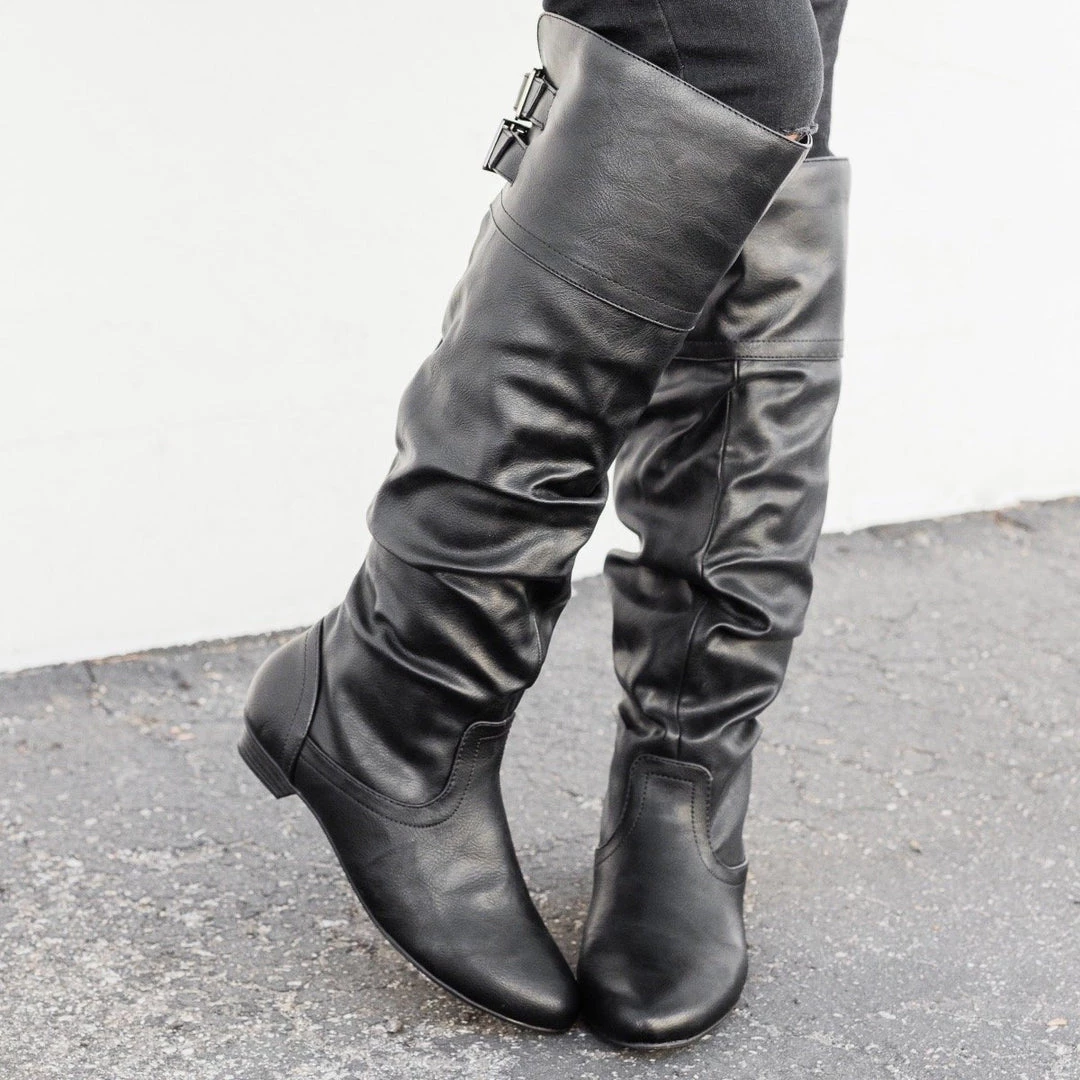 You will definitely get noticed for these beautifully crafted, chic slouchy boots. The Carano-S features a rounded toe, slouchy body ending just below the knee, and two darling accent buckles in the back. These beauties are completed with a 1/2” heel and are a slip on style. The gorgeous details on this shoe make it a must have! Made with all manmade/vegan materials and runs true to size.