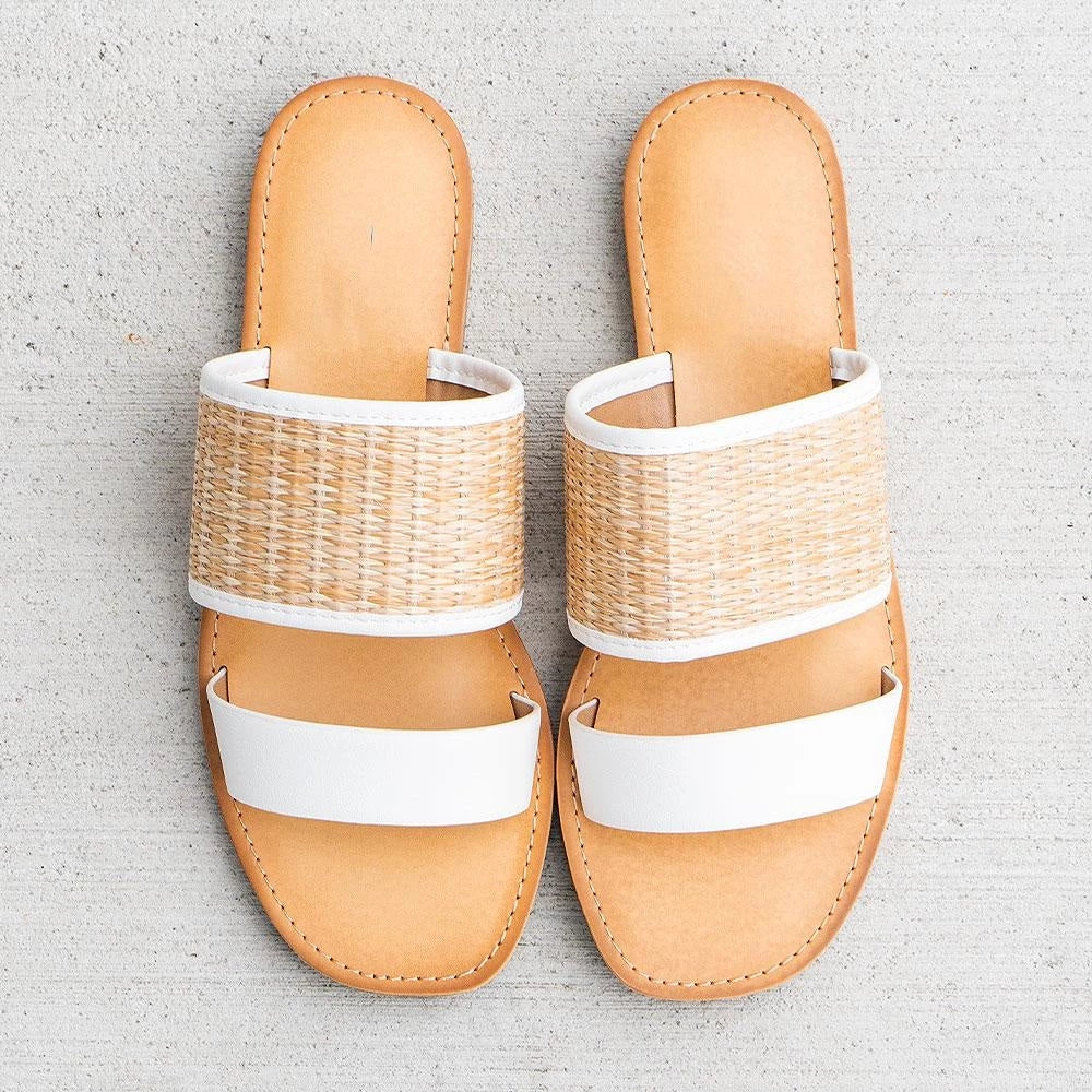 Grab your ice cold long island tea and meet the girls at the cabana with these Soda getup-s sandals! The woven strap featuring a nubuck neutral color strap will compliment your outfit well. Easily slip on and ready to go. Pair these with shorts and a cute top.Â