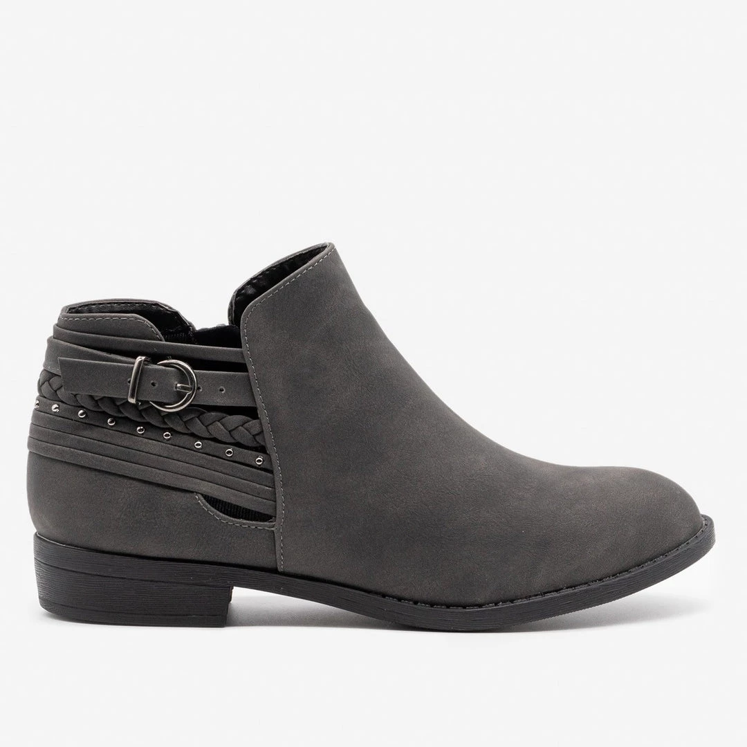 Kick up the dust in these adorable boho Soda Shoes Wall-S ankle booties! Designed with lightly distressed faux leather, these booties feature an approx. 1″ block heel for a little height without sacrificing comfort. Several straps with various detailing wrap around the back of the bootie, covering the u-shaped outer cut out. An inner zipper lets you slip these booties on and off with ease. Pair them with cuffed skinny jeans and a French-tucked sweater for a go-to busy day look! Made with all man-made/vegan materials and runs true to size.Â
