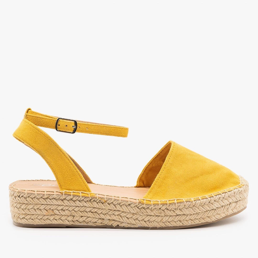 Set a fashion trend with these gorgeous Soda Shoes Fiesta-S espadrille sandals! These lovely sandals are made out of faux suede and are a summer essential! The 1.5″ flatform espadrille sole is right on trend, and the buckled ankle strap provides extra support when you’re wearing these super cute shoes. The rounded toe also ensures maximum comfort so you can wear these shoes all day, everyday. Pair these with a flowy midi skirt and a cropped tank top for the ultimate summer look! You can even wear these shoes with raw hem ankle jeans and a knotted graphic tee for a cool and casual outfit! Made with all man-made/vegan materials.