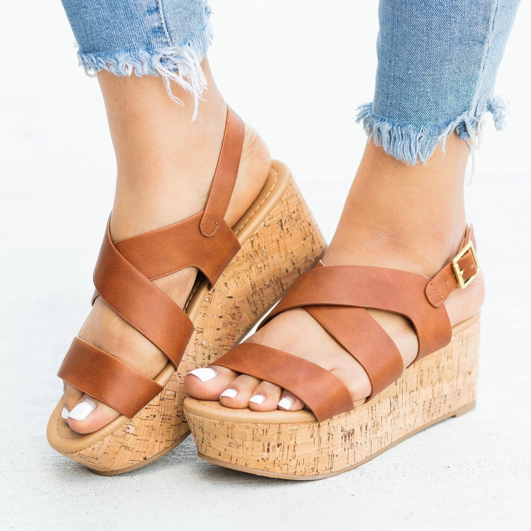 Turn heads with these beautiful Soda Shoes Letter-S flatform wedges! Made out of faux leather, these wedges feature a 3.5″ cork flatform sole and a lovely criss crossing strap design. The adjustable slingback ankle strap also makes these shoes super easy to put on and take off. Wear these wedges with a pair of high-waisted dark wash ankle jeans and a floral top for an adorable brunch outfit! Made of all man-made/vegan materials.