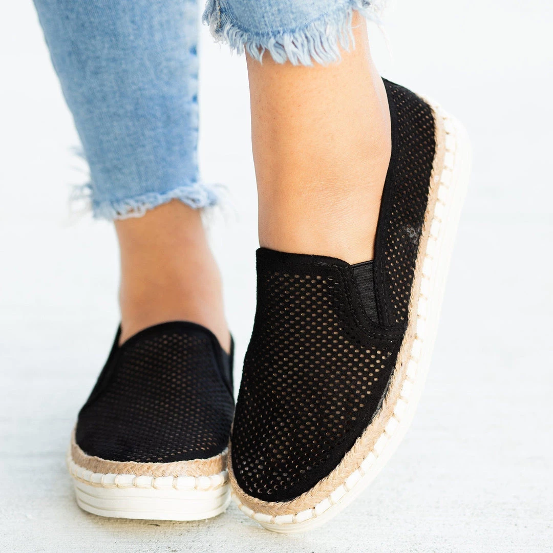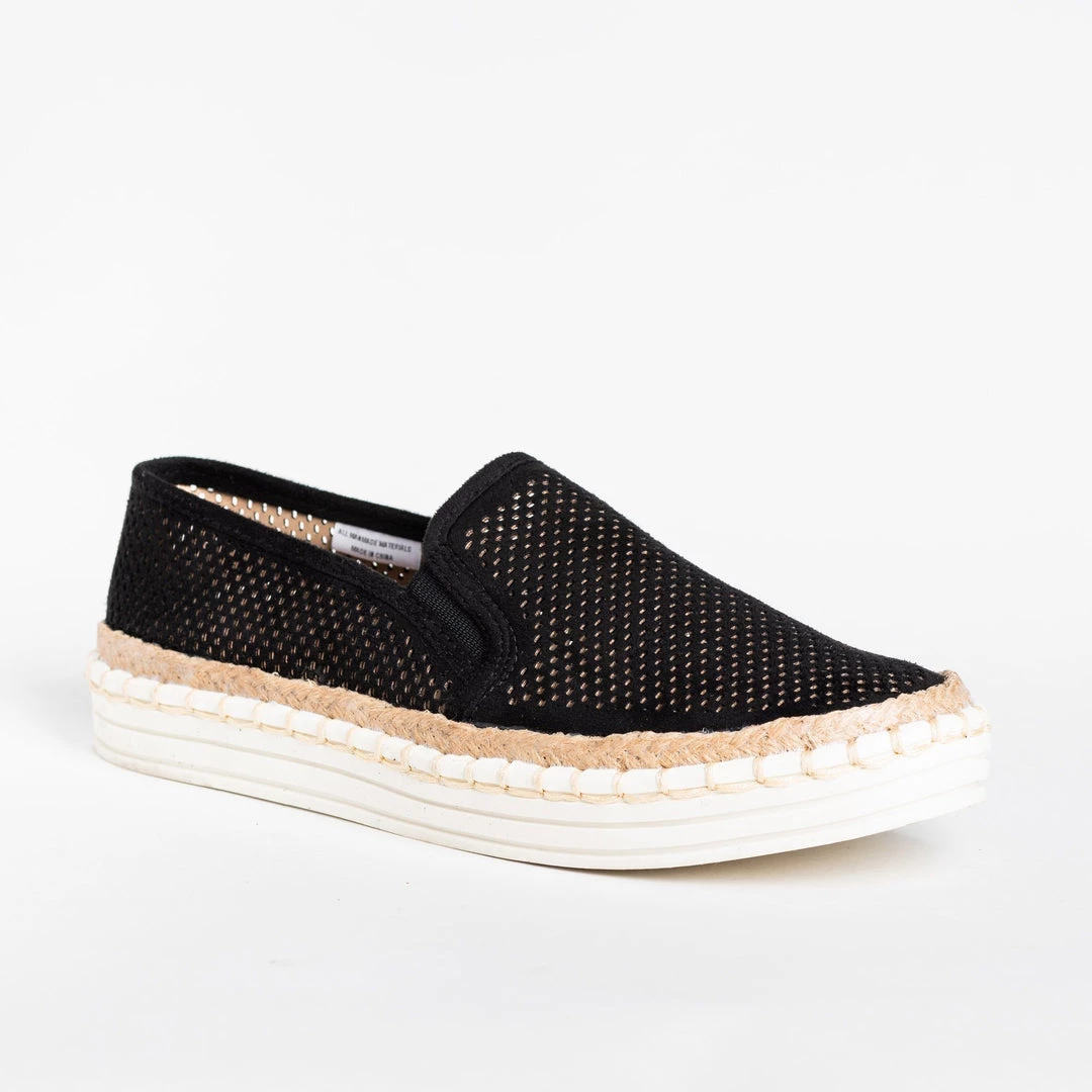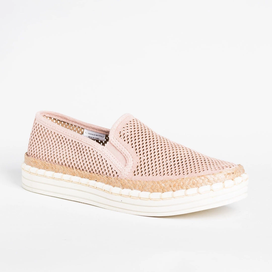 Put some pep in your step with these lovely Soda Shoes Viewer-G slip-on sneakers! These adorable sneakers are made out of faux leather and feature a trendy mesh pinhole design. The slip-on style makes it easy to put these shoes on and take them off, and the beautiful esparto trim accent gives these shoes a fashionable touch. Pair these sneakers with some ankle jeans and a vintage graphic tee for a cute and laid-back look! Made with all man-made/vegan materials.