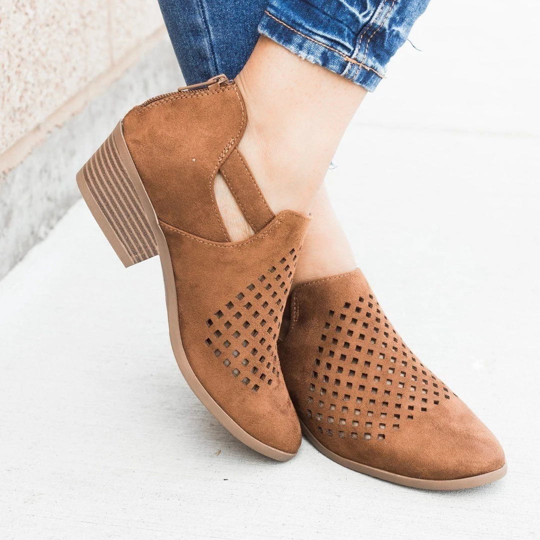 Soda Shoes Newest Arrivals Perforated Block Heel Ankle Booties