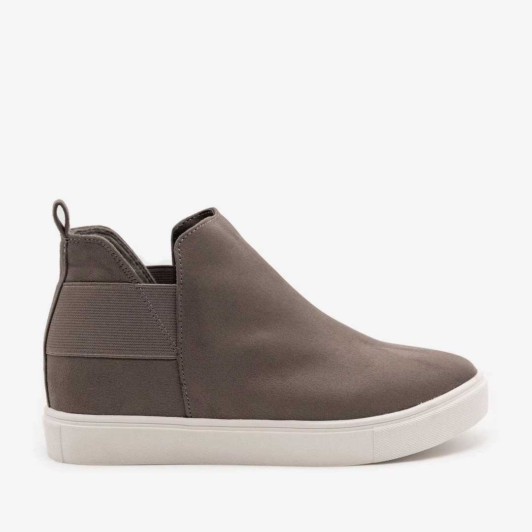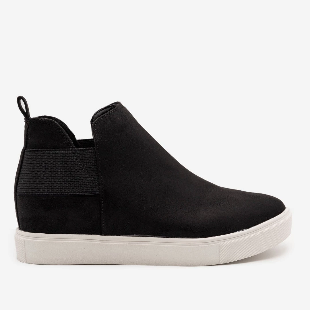 Put a little pep in your step with these chic Soda Shoes Diana-S sneakers! Crafted with faux suede, these sneakers feature white foxing, a classic rounded toe and an approx. 1.5″ inner wedge sneaker to give you some subtle height. The body is sleek, rising to just over the ankle and has v-shaped cutouts on both sides of the ankle. Wide elastic panels add extra support and let you slip these beauties on and off with ease. Pair them with skinny jeans and a cropped leather jacket for an edgy daytime look! Made with all man-made/vegan materials and runs true to size.