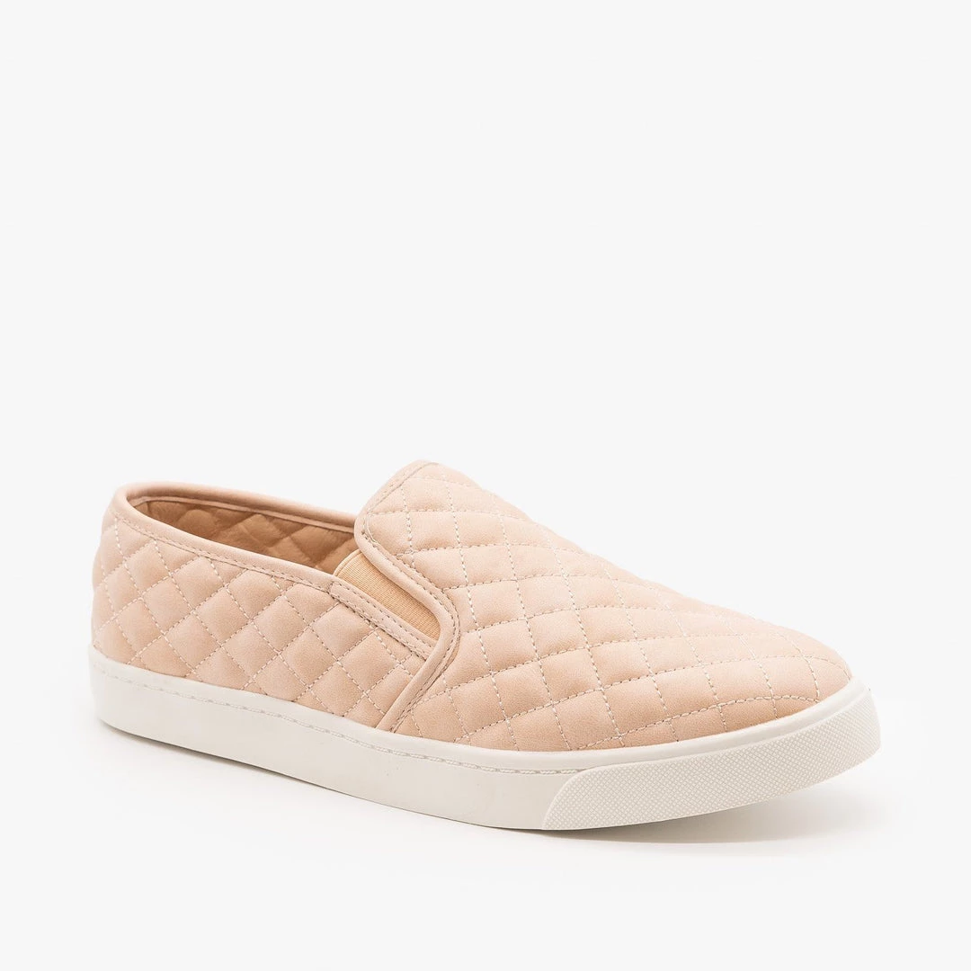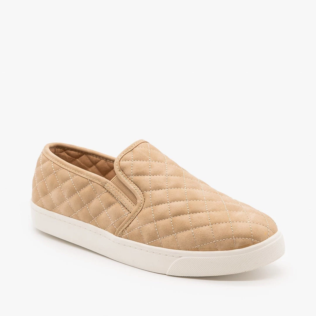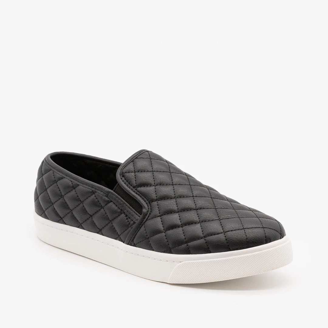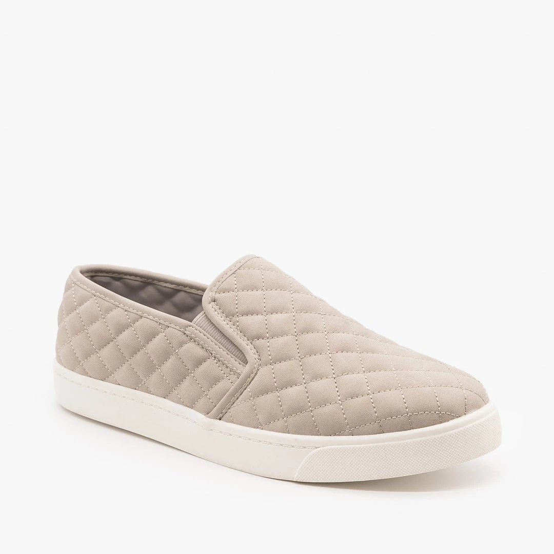 Walk a mile in these Soda Shoes Alone-G slip-on sneakers! Made out of faux nubuck, these sneakers feature an easy-to-wear slip-on style and an adorable quilted design. The soft nubuck material also makes these shoes comfortable enough to wear all day long. Available in several different colors, these shoes go great with any outfit–from jeans and leggings to dresses and denim jumper dresses, you can’t go wrong with these shoes! Made with all man-made/vegan materials.
