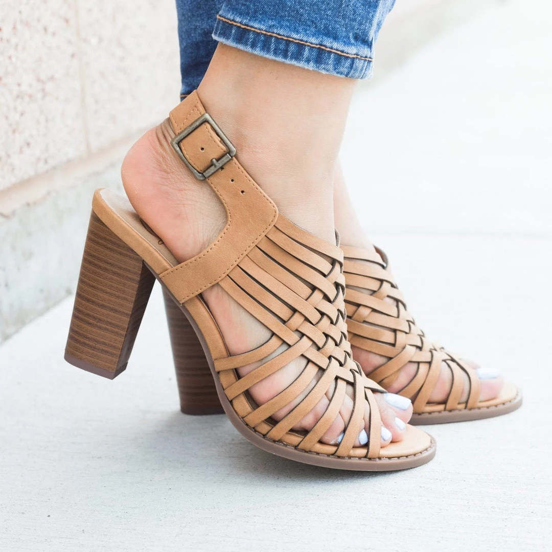 Soda Shoes Newest Arrivals Strappy Woven Chunky Heel