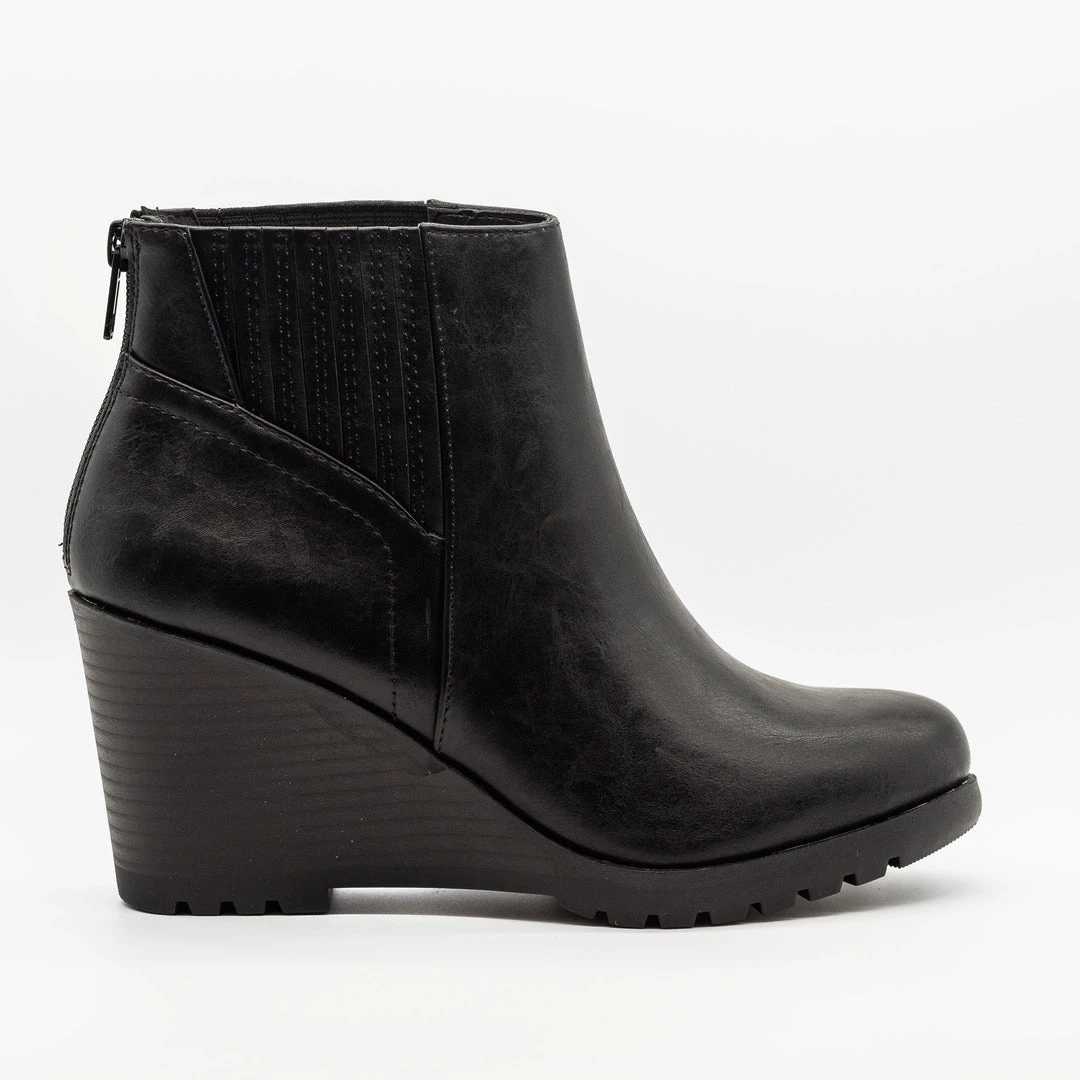 Put your best foot forward with the Soda Shoes Pesto-S bootie wedges! These wedges are crafted out of faux leather and feature a back ankle zipper for easy on/off access. The 3″ wedge gives these shoes some major height while the ridged sole provides extra support. Wear these wedges with some leggings and an oversized flannel for a cute and comfy fall look! Made with all man-made/vegan materials.
