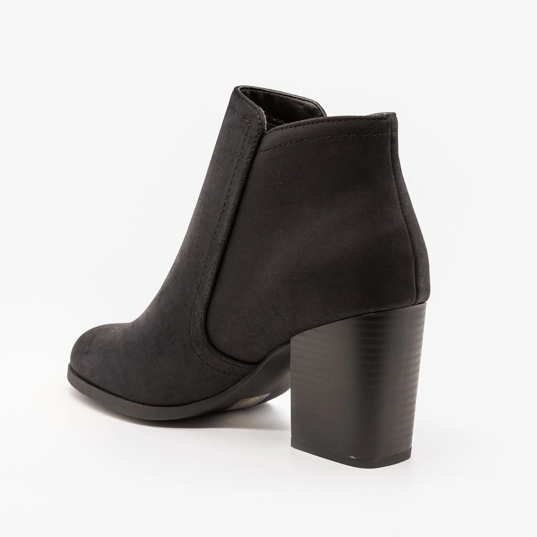 Walk the runway in these super chic Soda Shoes Dotcom-S ankle booties! Beautifully crafted out of faux nubuck or faux leather, these booties feature a 3″ stacked chunky heel for maximum height and sass and an edgy side zipper design. The almond-shaped toe gives these booties a classic and sleek look. You can wear these booties with a bodycon dress with an oversized cardigan layered over for a trendy, edgy, and flirty look! Made with all man-made/vegan materials.
