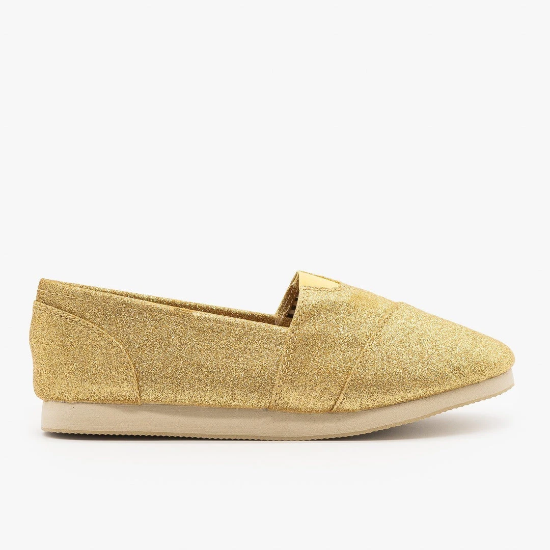 Let your personality shine in these sparkly gold Soda Shoes Object-GS flats! These beauties feature a rubber sole and padded insole for lasting comfort and a super sassy pointed toe. The body of the flat is entirely sparkly gold with one small cutout for decor and flexibility. Slip these flats on with a pair distressed boyfriend jeans and a cropped sweater for a super cute, easy outfit! Made with all man-made/vegan materials and runs true to size.