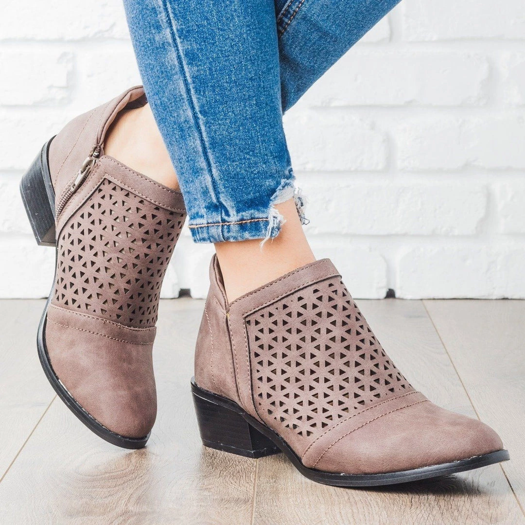 Beautiful detailed laser cut ankle bootie! The Soho Girls Kent-3 bootie is crafted in faux nubuck and have 2″ stacked heel and side zipper. Made with all manmade/vegan materials and runs true to size.