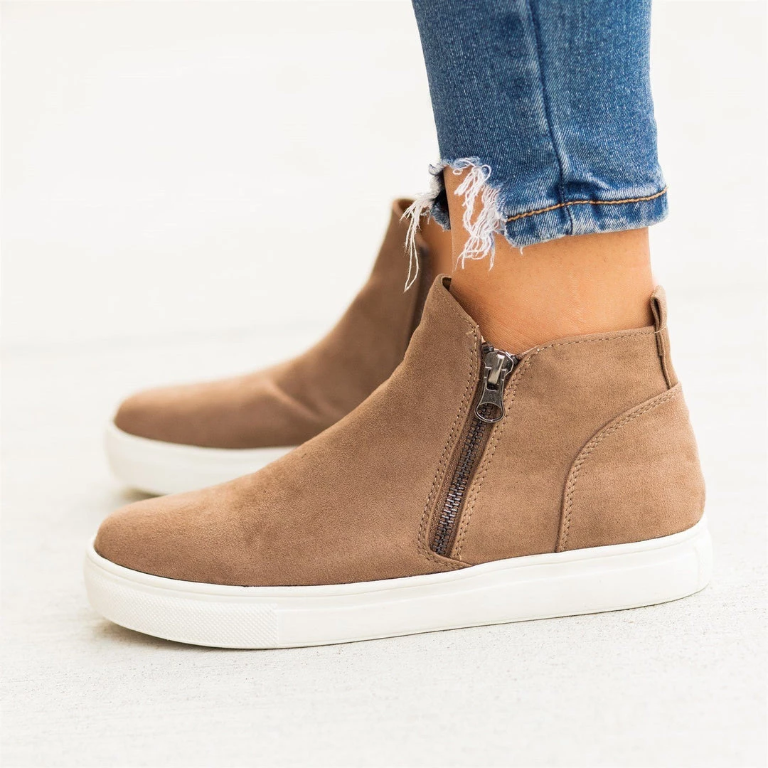Add an edgy touch to any outfit with these Soho Shoes Eric-1 ankle sneakers! These super cute sneakers are made out of faux suede and feature a side zipper accent for extra edge and easy on/off access. The rubber sole provides maximum support and comfort. You can wear these sneakers with a basic t-shirt dress or with some ankle jeans and a graphic tee for the perfect laid-back look! Made with all man-made/vegan materials.