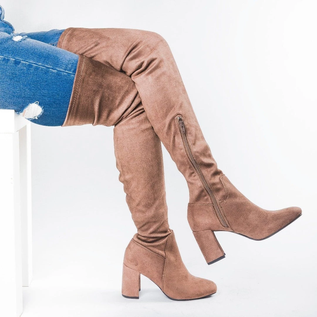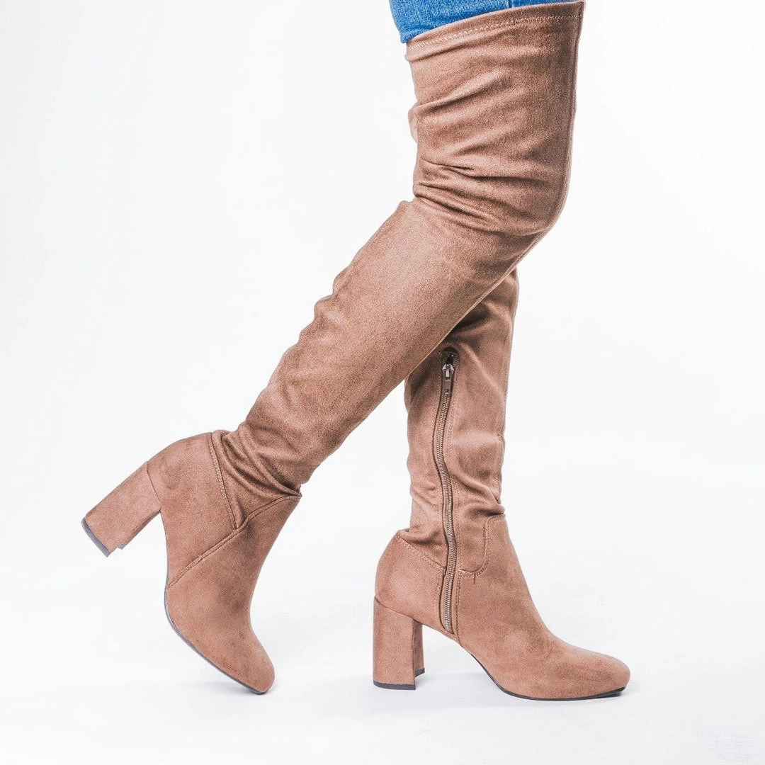 Step out on the town in these super cute Speed Limit 98 Shoes Billy-S over-the-knee boots! Made of faux side and featuring a side zipper, these boots are sure to catch everyone’s eye. The 3″ heel makes these boots the perfect finishing touch to any outfit. These boots also have an almond-toe shape design that makes them comfortable and stylish enough to wear with anything in your closet. Wear these with a sweet mini dress for a sexy and cute look, or with some jeans and a cute top for an outfit that’s great for an all-day shopping spree! Made with all man-made/vegan materials and fits true to size.
