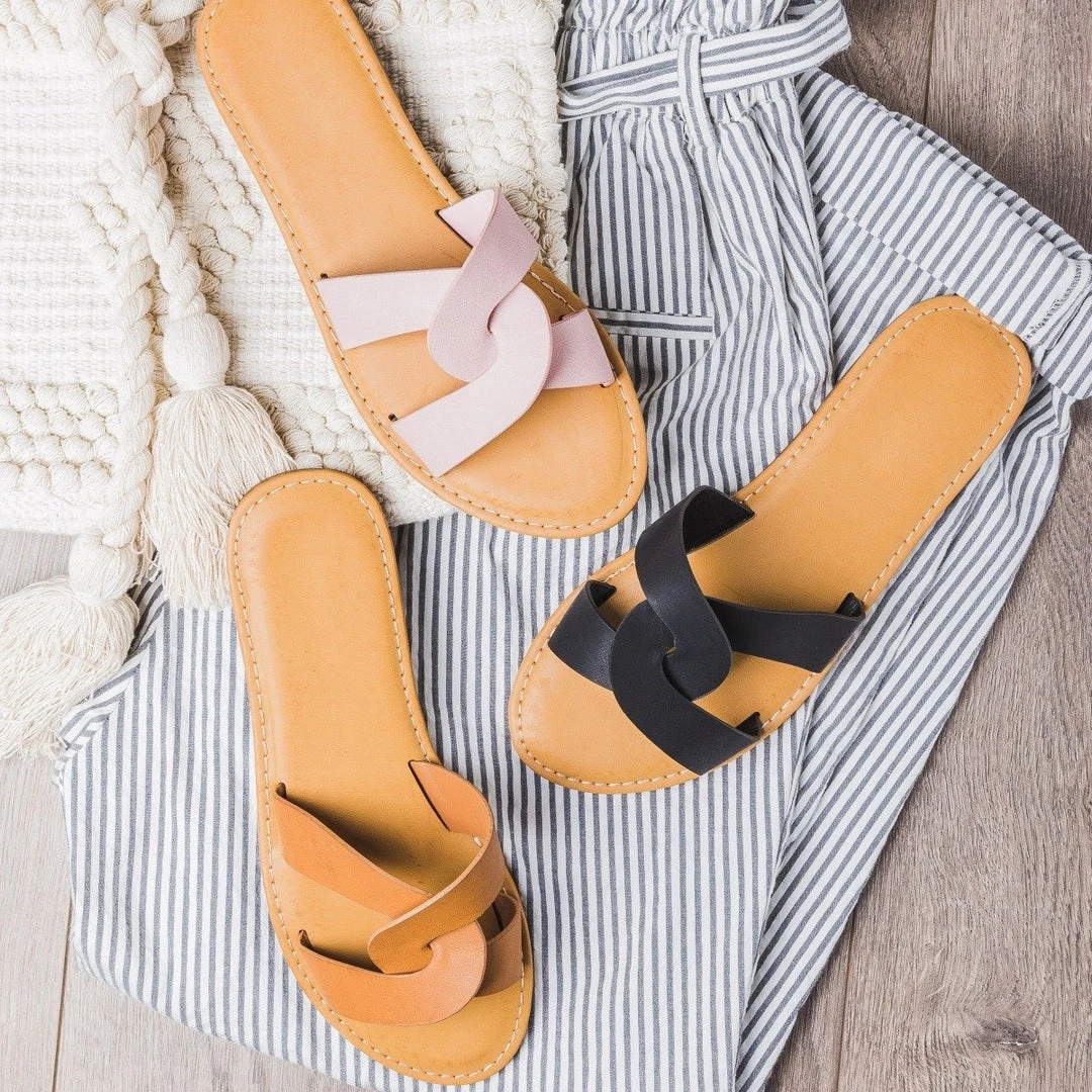 How adorably cute are these knotted strap slides?! Made with faux leather material and feature a knotted strap slip-on style, an open toe, and padded insoles. These are the perfect pair to style with your favorite summer or spring outfits. Pair these with a cute crop top and some striped pants, and you’ve got an outfit that’s both fashionably chic and comfy! Made with all man-made/vegan material and runs true to size.