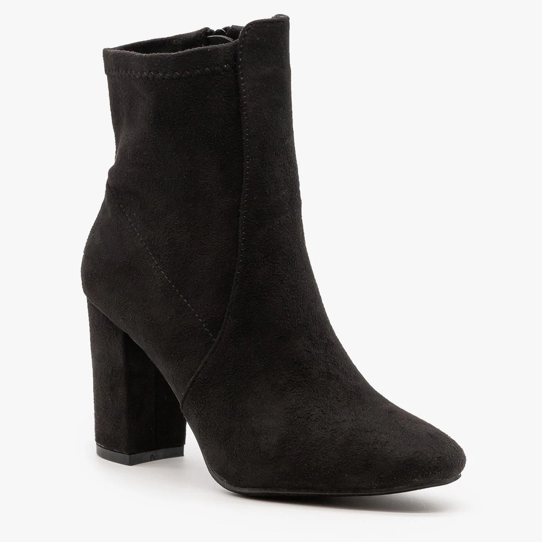 Kick your style up a notch in these gorgeous Top Moda Shoes Carris-1 booties! Crafted with faux suede, these booties feature a sassy pointy toe and an approx. 3.5″ chunky heel. They rise to just over the ankle with a soft, semi-sock-boot style top. The entire bootie, heel to toe, is monochrome in either red or black, making these booties super chic and modern. A full-length inner zipper gives you easy on/off access. Pair these booties with sheer black tights, a super short black skirt and a fitted sparkly top for a stunning party-ready look! Made with all man-made/vegan materials and runs true to size.