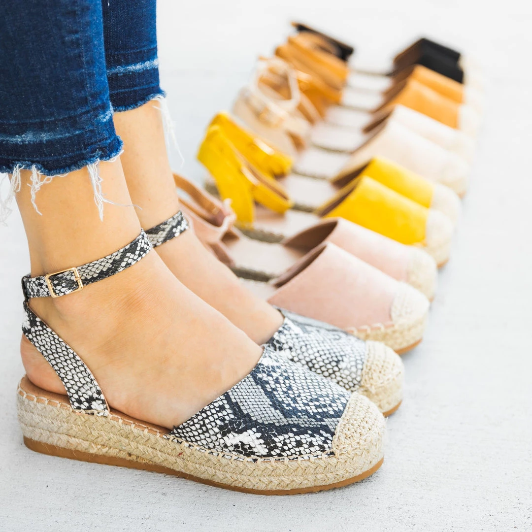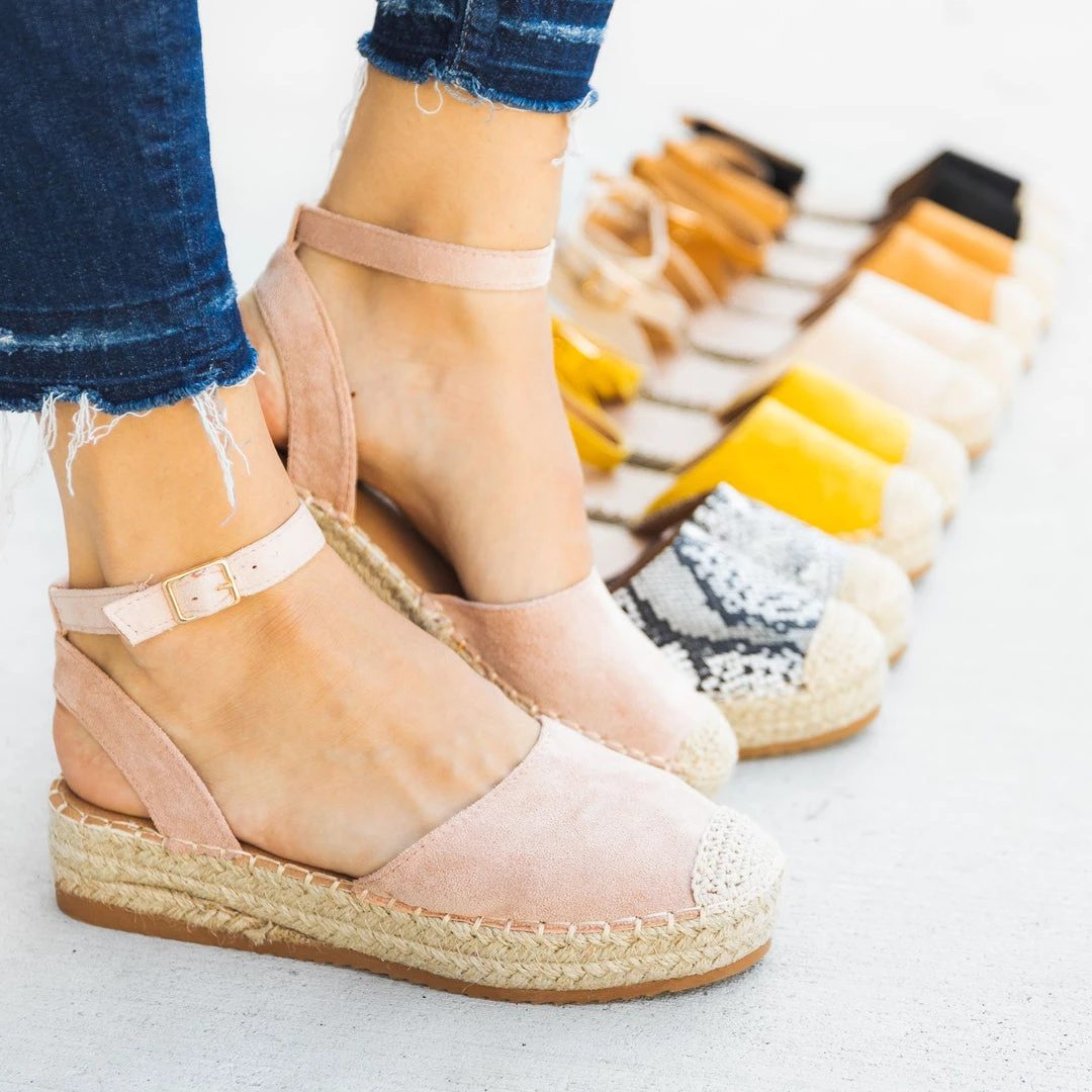 Bring the comfort back into style with our new Top Moda Shoe Scarlett-3 flatform sandal! Designed with an aprox. 1.5” platform these sandals bring all the style and comfort to any look. This sandal features a closed toe made from faux suede along with an ankle strap with adjustable buckle. An espadrille platform with a rubber sole make it the perfect blend of cute and comfortable, perfect for brunch with friends. Pair these gorgeous sandals with light wash skinny jeans and off the shoulder top for a fun and flirty summer look! This shoe is man-made with all vegan materials. Take your perfect size as this shoe runs true to size!