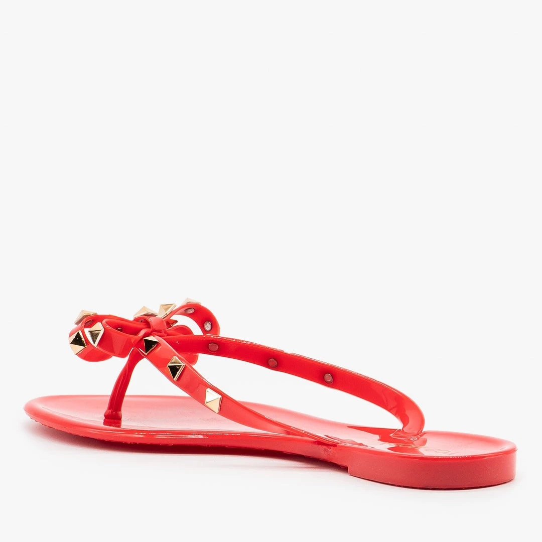 Top Moda Metallic Studded Jelly Flip Flop Sandals