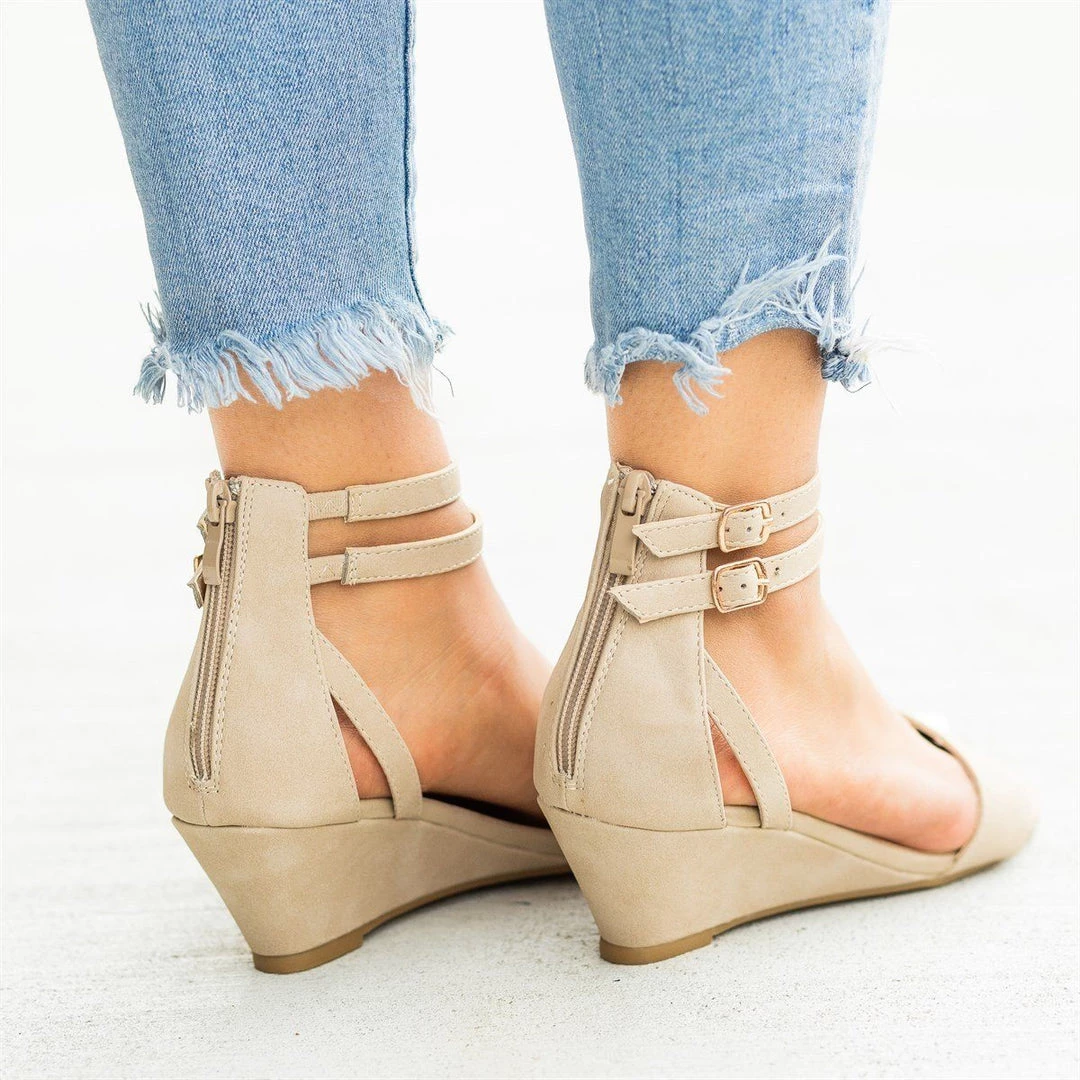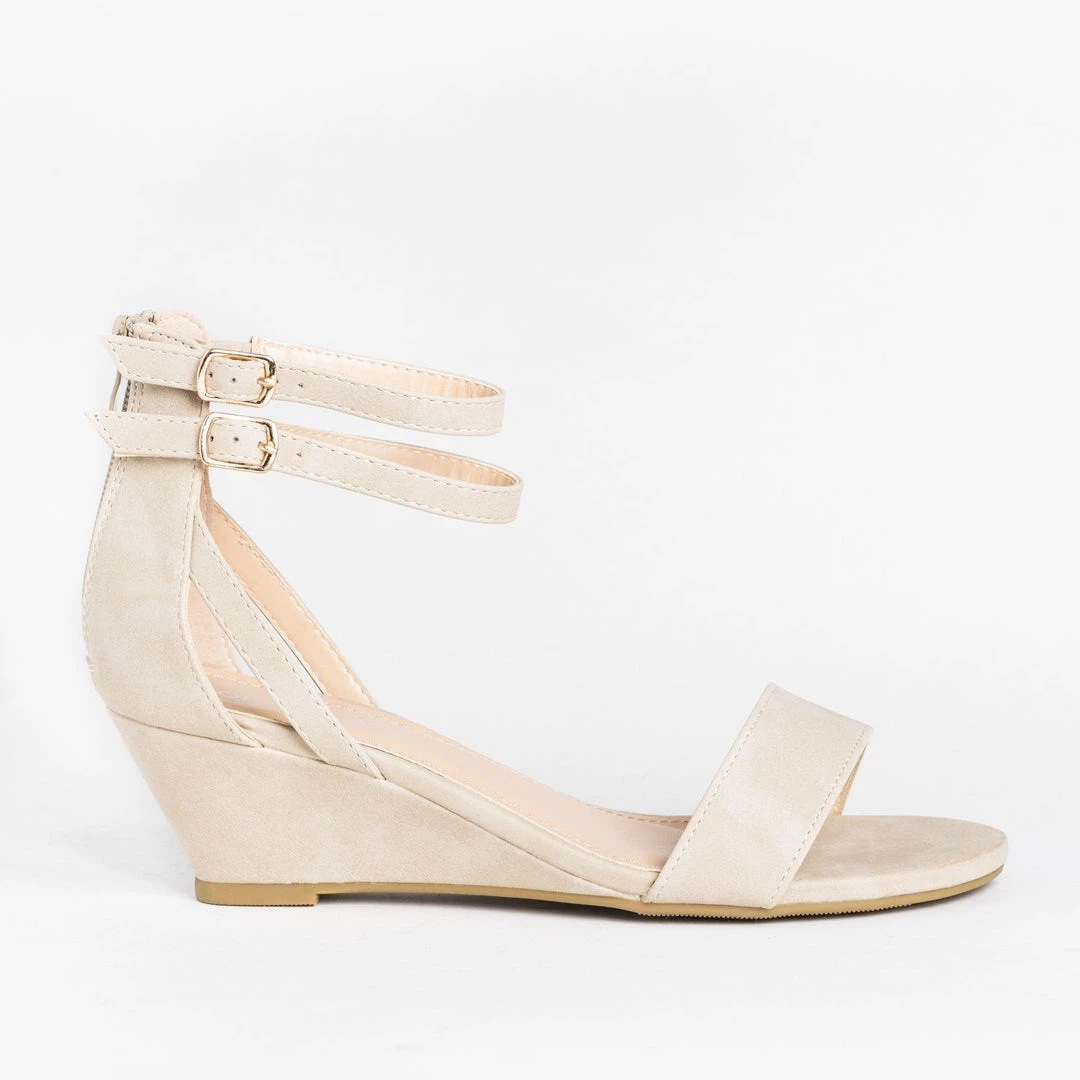 Put your best foot forward in these gorgeous Top Moda Shoes Joana-1 wedges! Beautifully crafted out of faux nubuck, these wedges feature a back ankle zipper for easy on/off access and a 1.5″ wedge for just a bit of height. The dainty double ankle strap design adds some extra style. Available in three different colors, these shoes will go great with a floral skater skirt and a basic bodysuit for the cutest springtime outfit! Made with all man-made/vegan materials.
