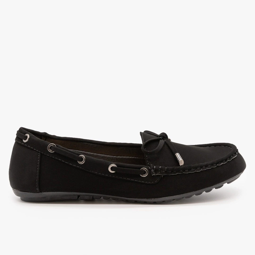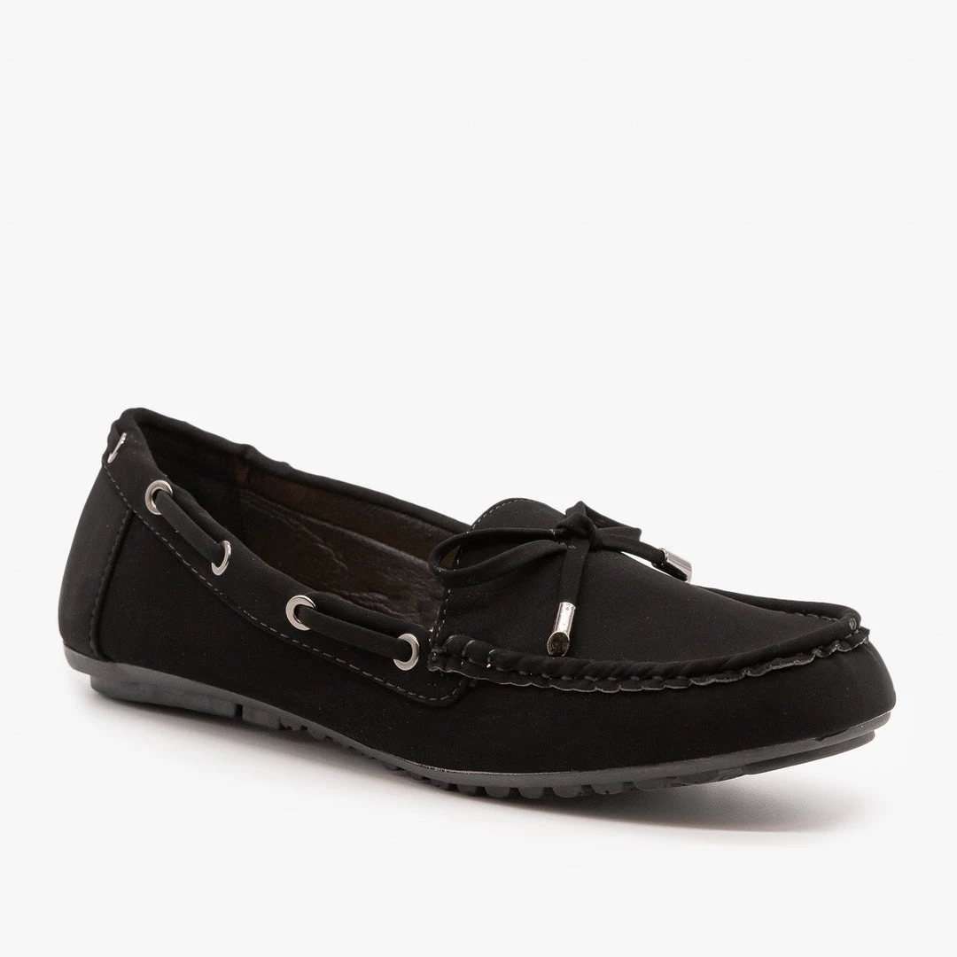 Stay cute and comfy in these moccasin style Top Moda Shoes Mable-88 flats! Crafted with faux nubuck, these flats feature a sturdy rubber sole, a nicely-padded insole and a cute rounded toe. They also feature wide stitching along the outside in traditional moccasin style. The string is tied in a cute bow on top and finished with metallic ends. The slip on style makes these flats easy to grab on your way out the door. Try pairing them with cuffed boyfriend jeans and a cozy sweater for an easy everyday outfit! Made with all man-made/vegan materials and runs true to size.Â
