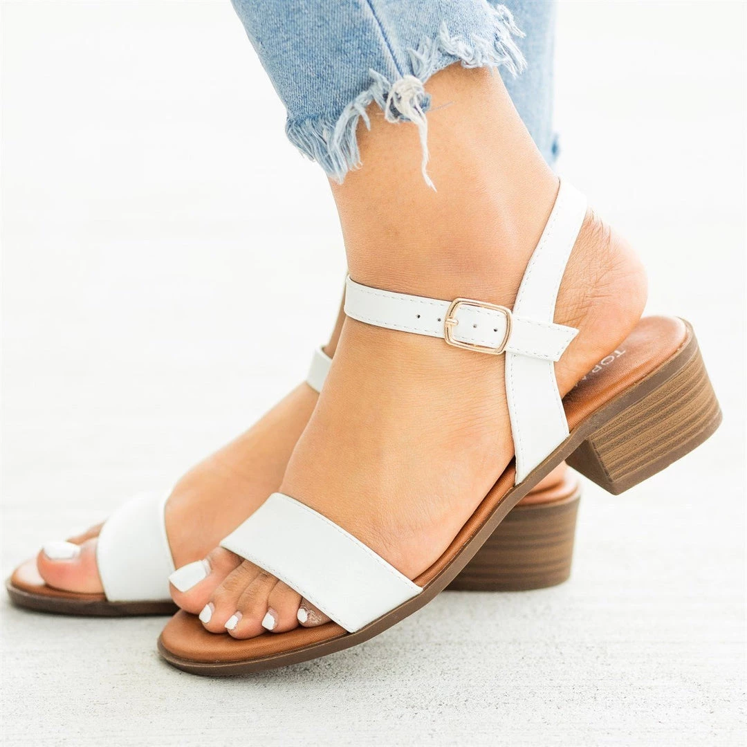 Get ready for the summer sun with these beautiful Top Moda Shoes Courtney-5 mid-heel sandals! Made out of faux leather, these sandals feature a 1.5″ stacked chunky heel for just a bit of height and an adjustable ankle strap for easy on/off access. The open-toe design also allows you to show off your newest pedicure! Wear these mid-heel sandals with everything from high-waisted ankle jeans to a ruffled off-the-shoulder midi dress! Made with all man-made/vegan materials.