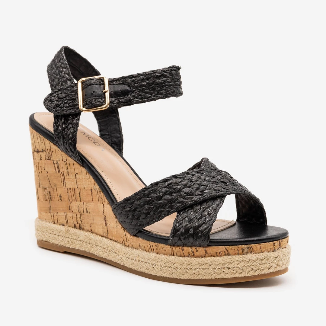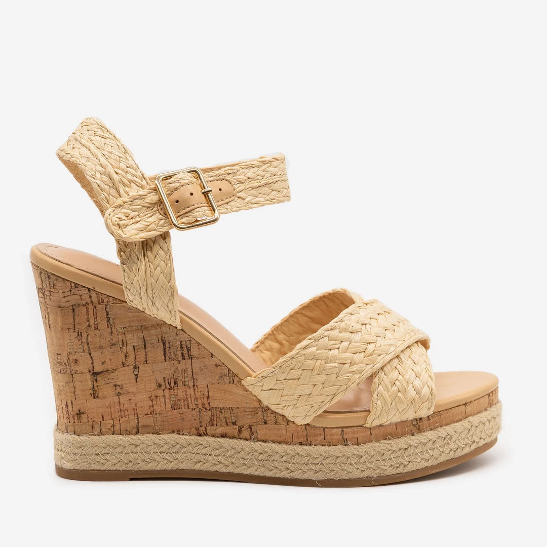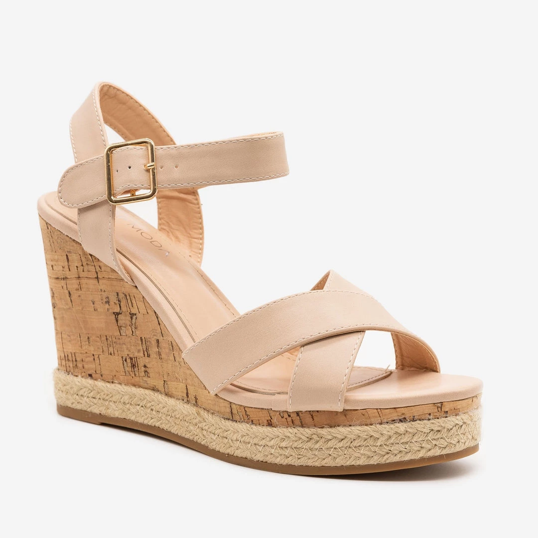 Our new Top Moda Kalina-5 espadrille wedge is a must-have to elevate any wardrobe. Crafted wth a cork design body these wedges feature an approx. 4’’ wedged heel with a classic espadrille trim along the bottom and faux leather or raffia detailing for the straps across the toes, ankle and heel of the foot. Perfect your summer look by pairing these with a simple summer dress or bump up your style and pair with denim cut off shorts and cropped flowy top of choice! This shoe is man-made with all vegan materials. Take your perfect size as these shoes run true to size.Â