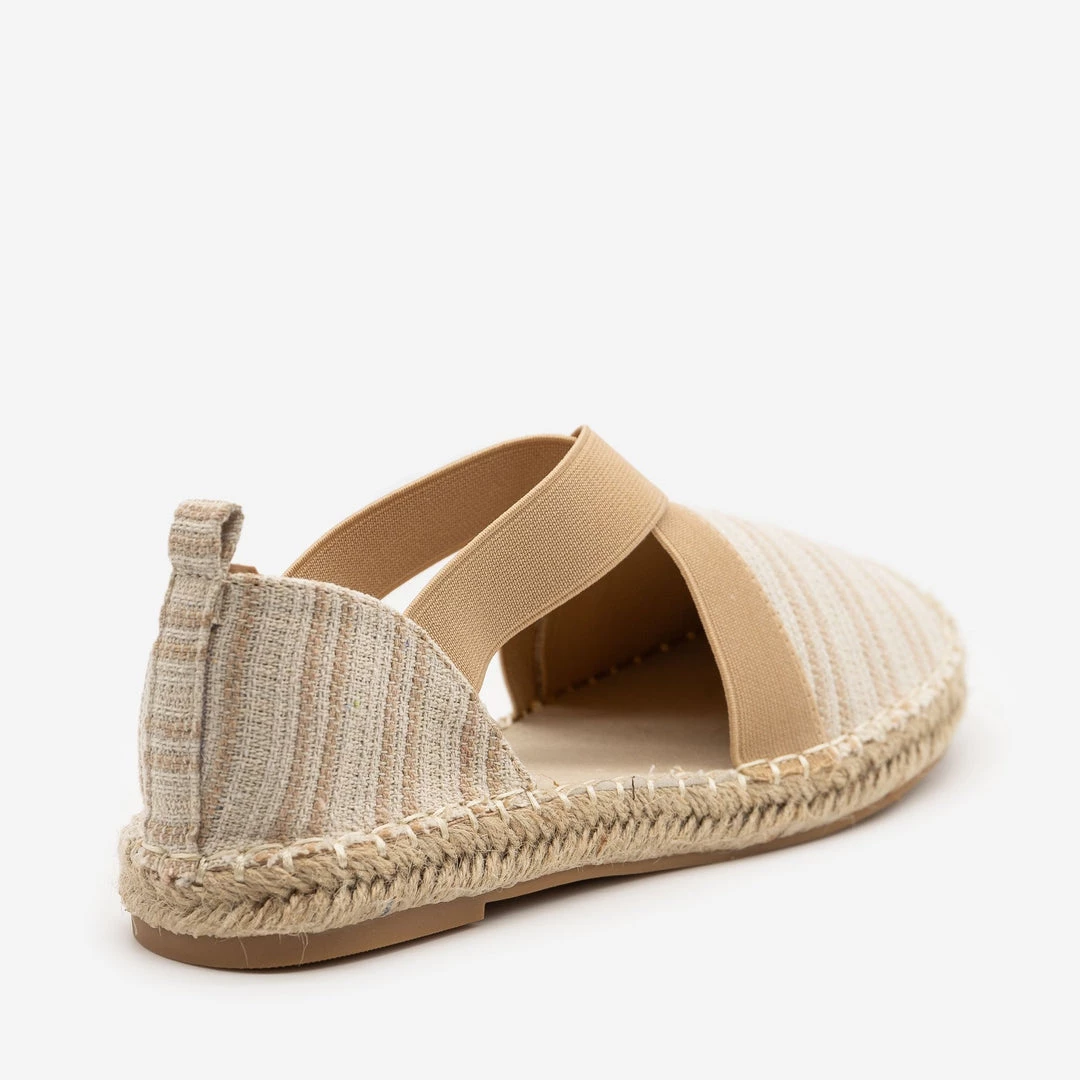 These Top Moda Shoes Braden-1 flats are the perfect everyday summer shoe! These comfy flats feature an espadrille-trimmed sole with accent stitching, a cushioned insole for a lasting comfort and a closed, capped toe. The body is a d’Orsay style, cut away at the sides with a back ankle support and features a light striped knit pattern for a soft boho feel or a classic solid black. Wide elastic bands criss-cross over the foot, letting you slip these beauties on and off with ease. Pair them with straight leg denim and a knotted band tee for a cute and easy everyday style! Made with all man-made/vegan materials and runs true to size.