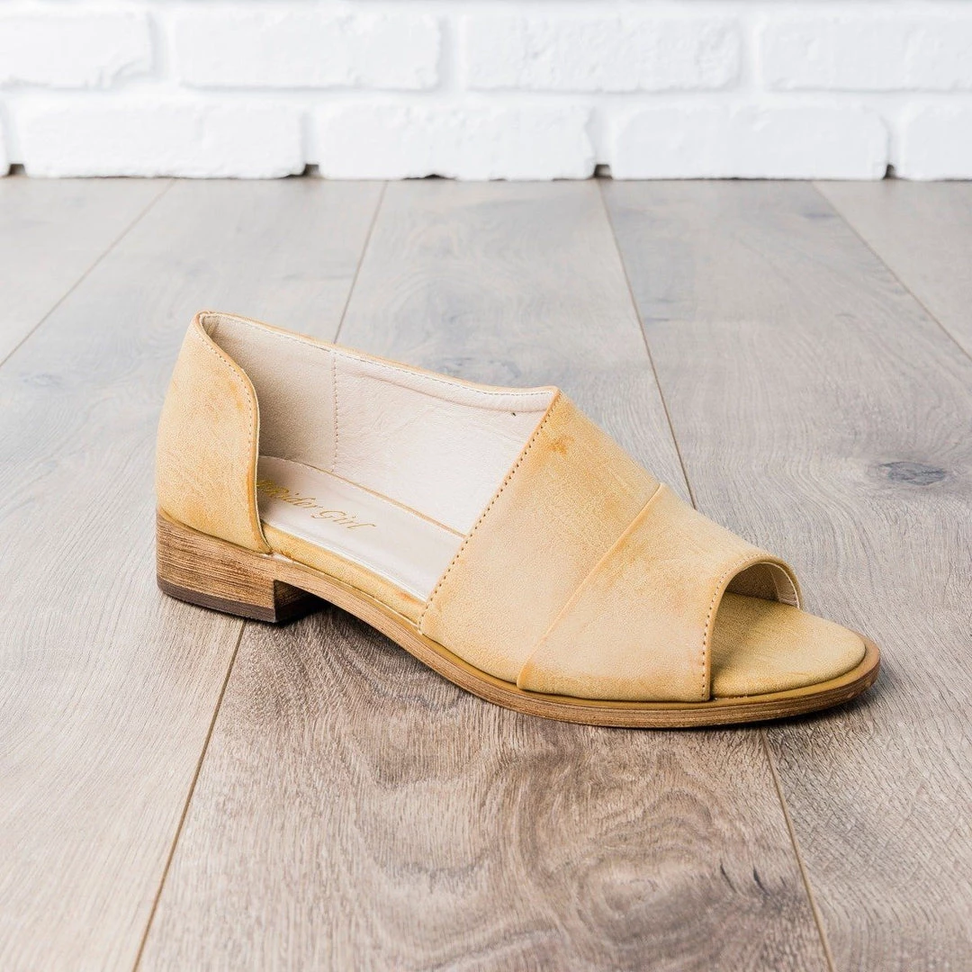 Give your favorite outfits a go in these gorgeous Air Rider Shoes Yoyo designer cut flats! Made with faux leather material and feature a peep toe, cushioned insoles, a slip-on style, and a chic designer cut design. Pair them up with striped midi dress for a simply dashing look! Made with all man-made/vegan material and runs true to size.